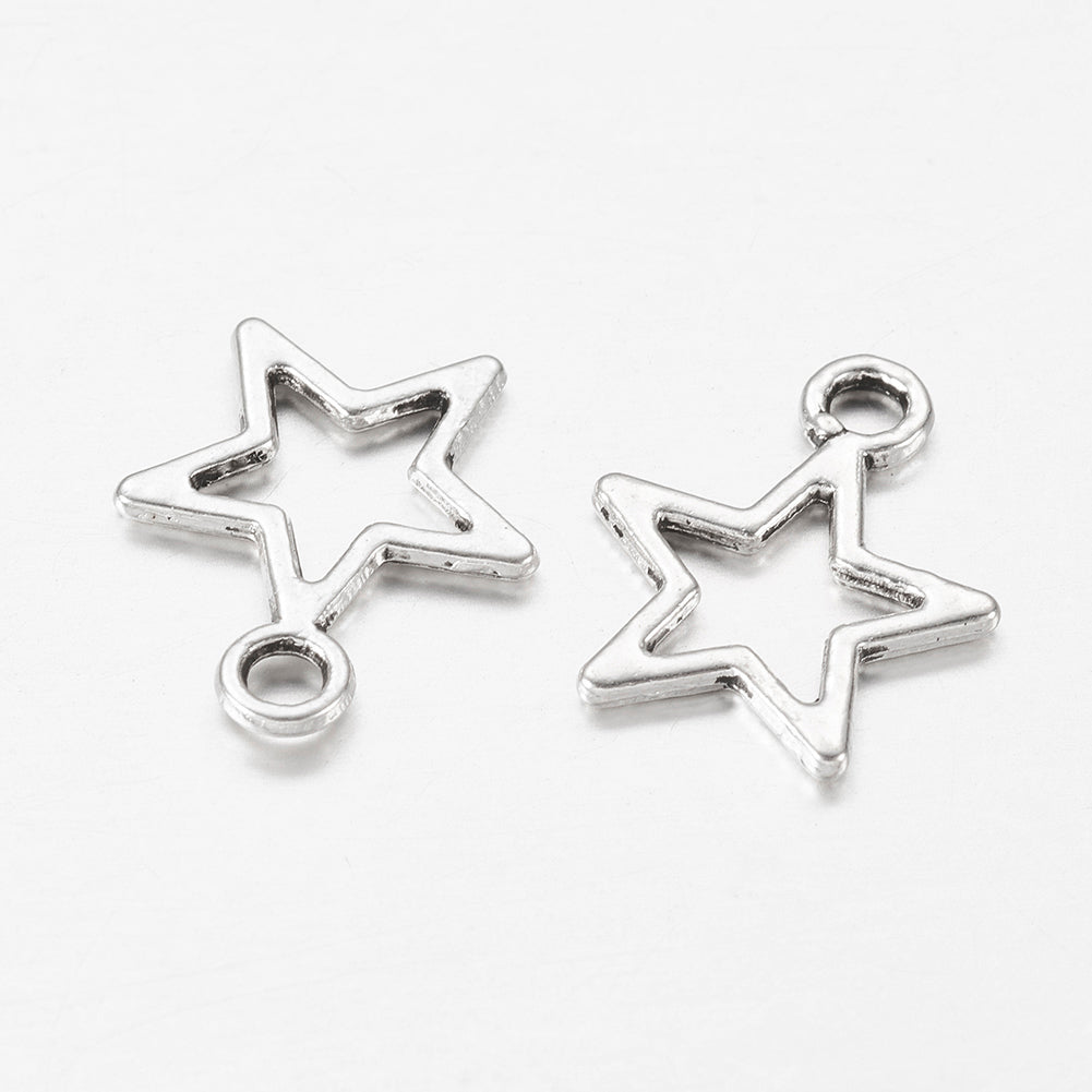 Tibetan Style Alloy Charms, Star, Antique Silver, Lead Free & Cadmium Free, 14.5x12x1mm, Hole:2mm, 50pc/Set
