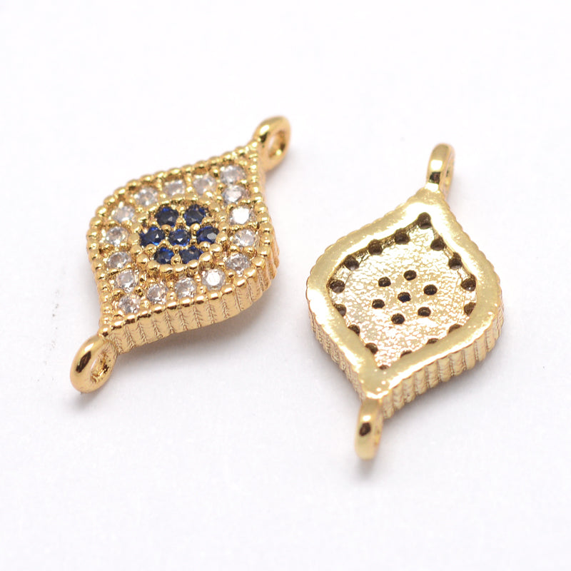Eye Flat Round Brass Micro Pave Cubic Zirconia Links, Cadmium Free & Nickel Free & Lead Free, Real 18K Gold Plated, 16x8x2mm, Hole: 1mm