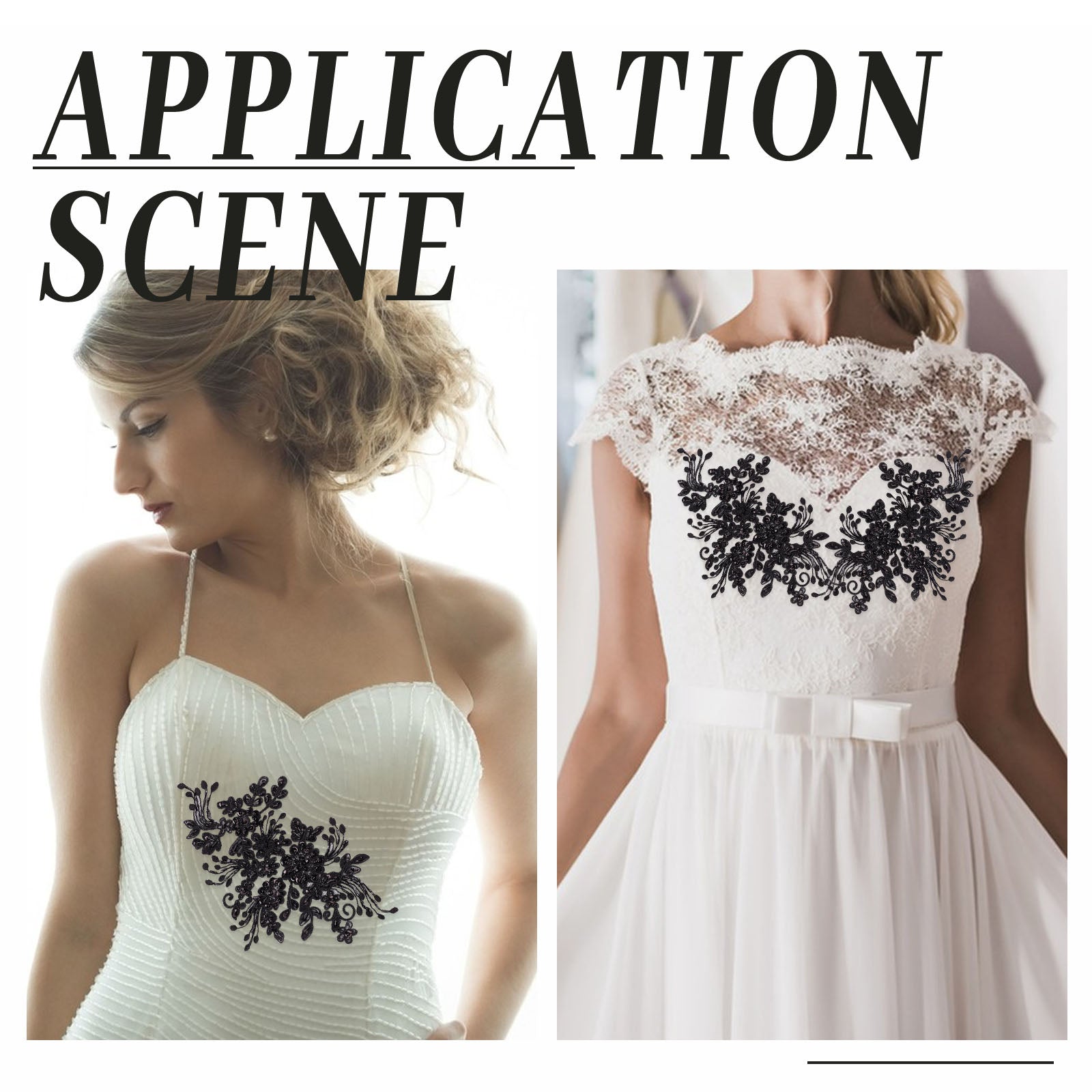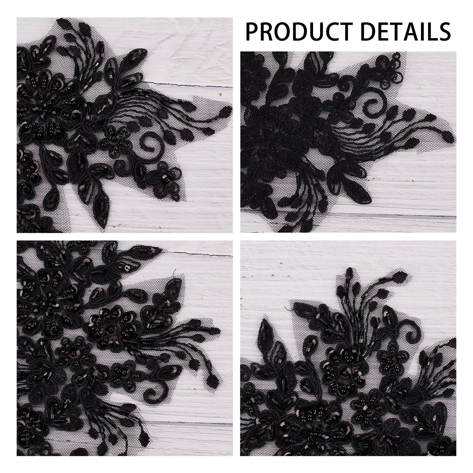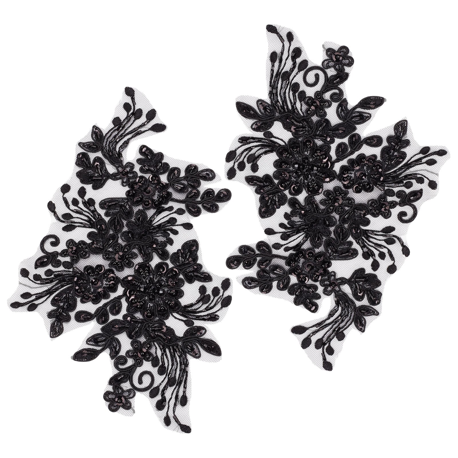 Flower Pattern Polyester Embroidered Lace Appliques, Handicarft Beading Appliques, Costume Dress Accessories, Black, 160x250x2mm