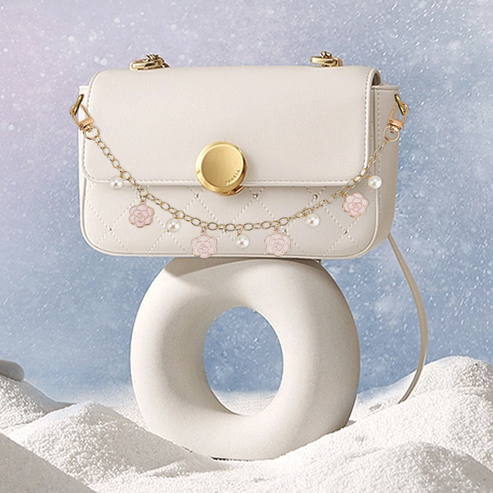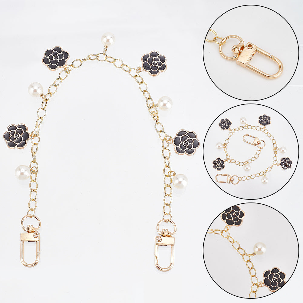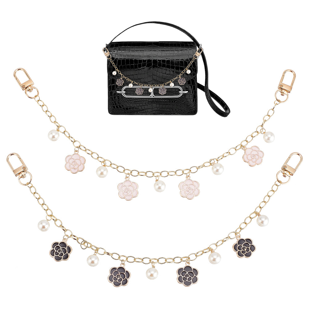 1 Set Brass Cable Chains Bag Strap Extender, with ABS Plastic Imitation Pearl Charms, Alloy Enamel Flower Pendants and Alloy Swivel Clasps, Golden, 32~32.5cm, 2 colors, 1pc/color, 2pcs/set