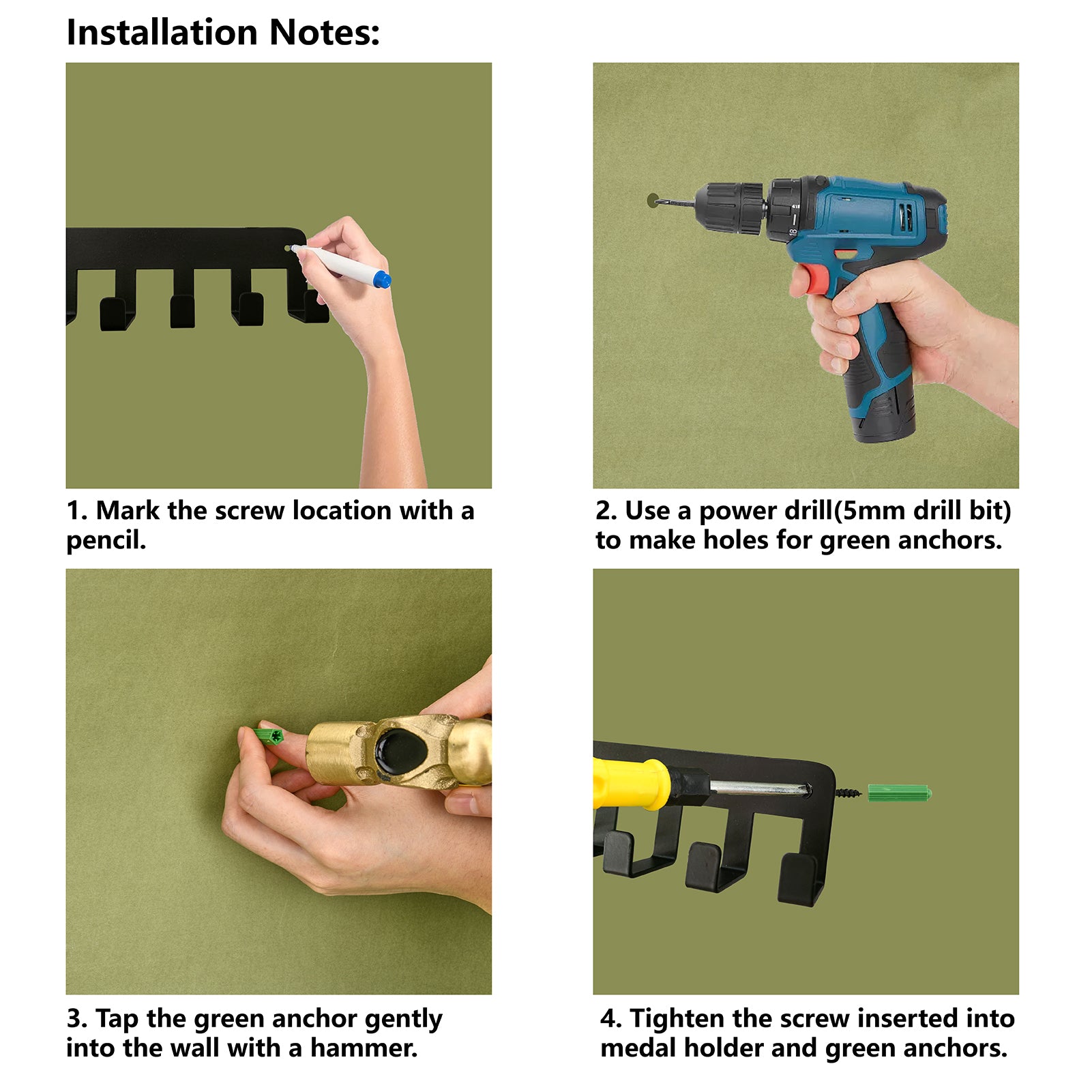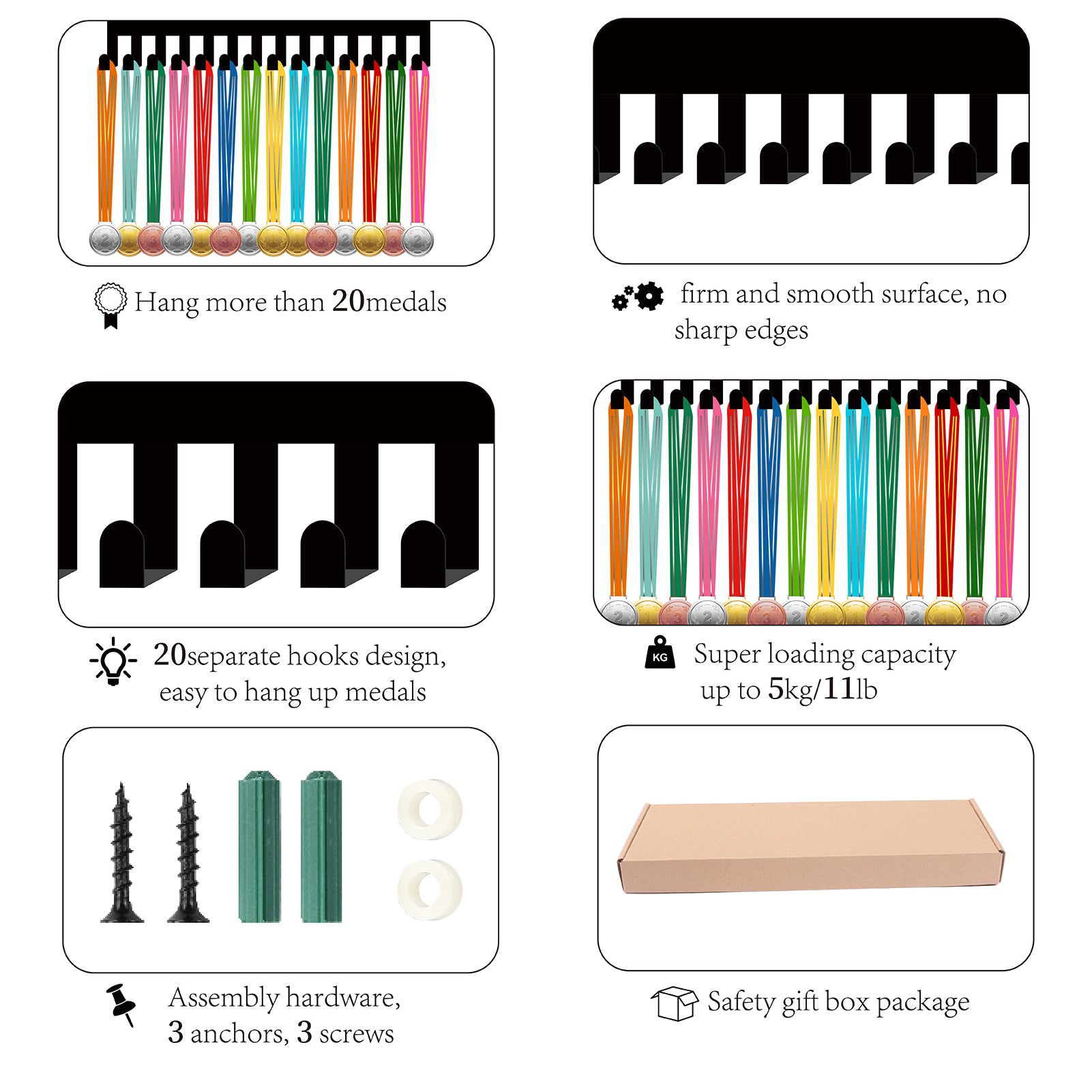 Iron Medal Holder Frame, Medals Display Hanger Rack, 14 Hooks, with Screws, Dancer Pattern