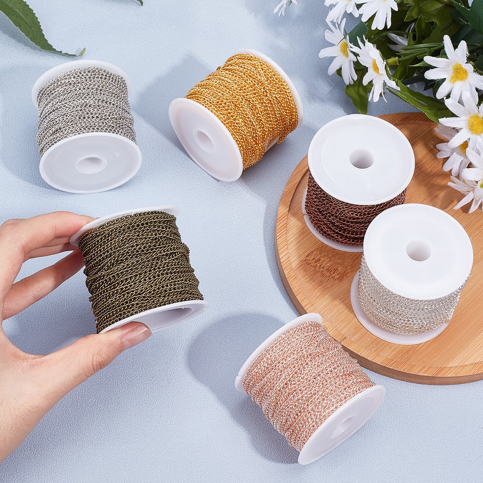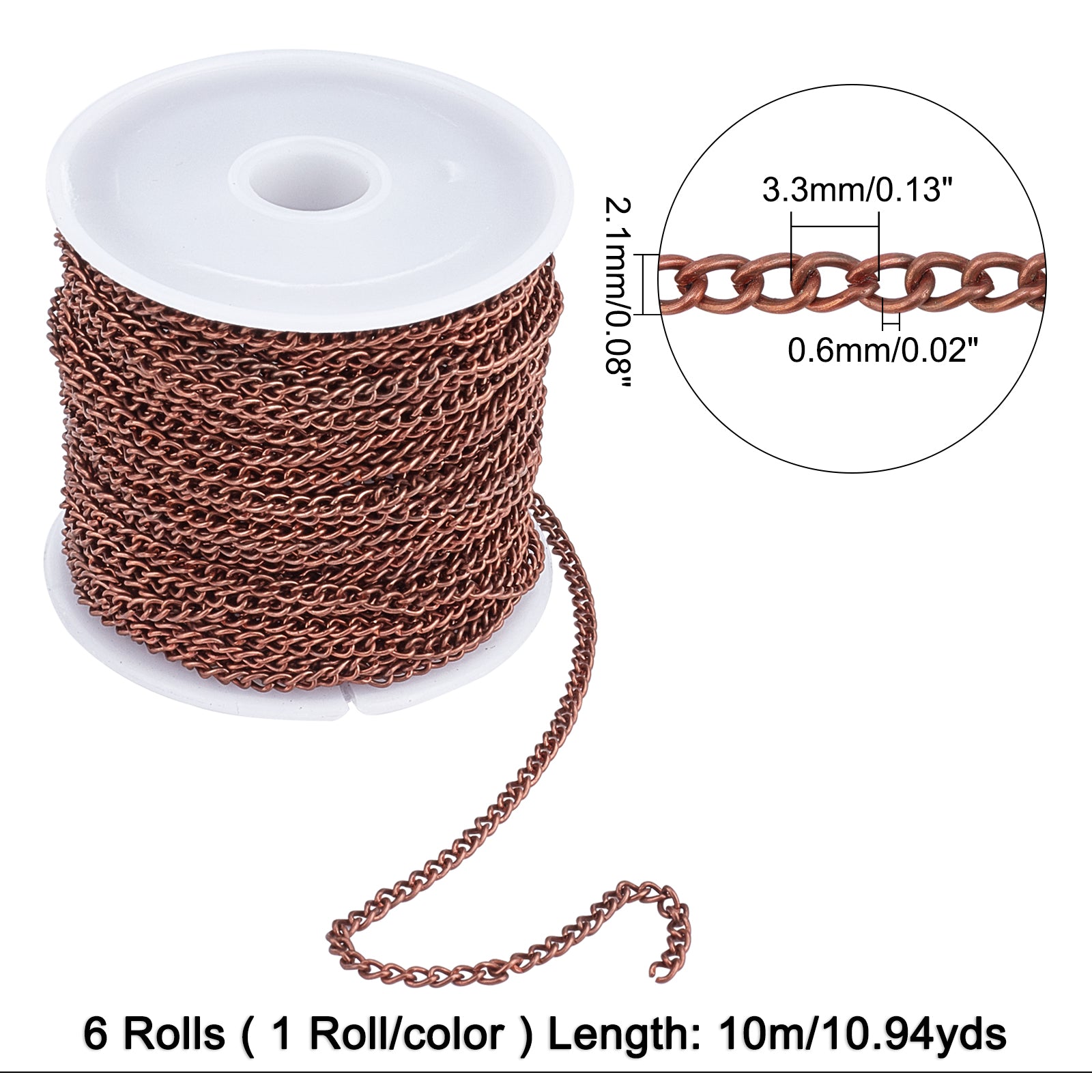 6Colors Unwelded Iron Twisted Chains, Curb Chains, with Card Paper, Mixed Color, 10m/color