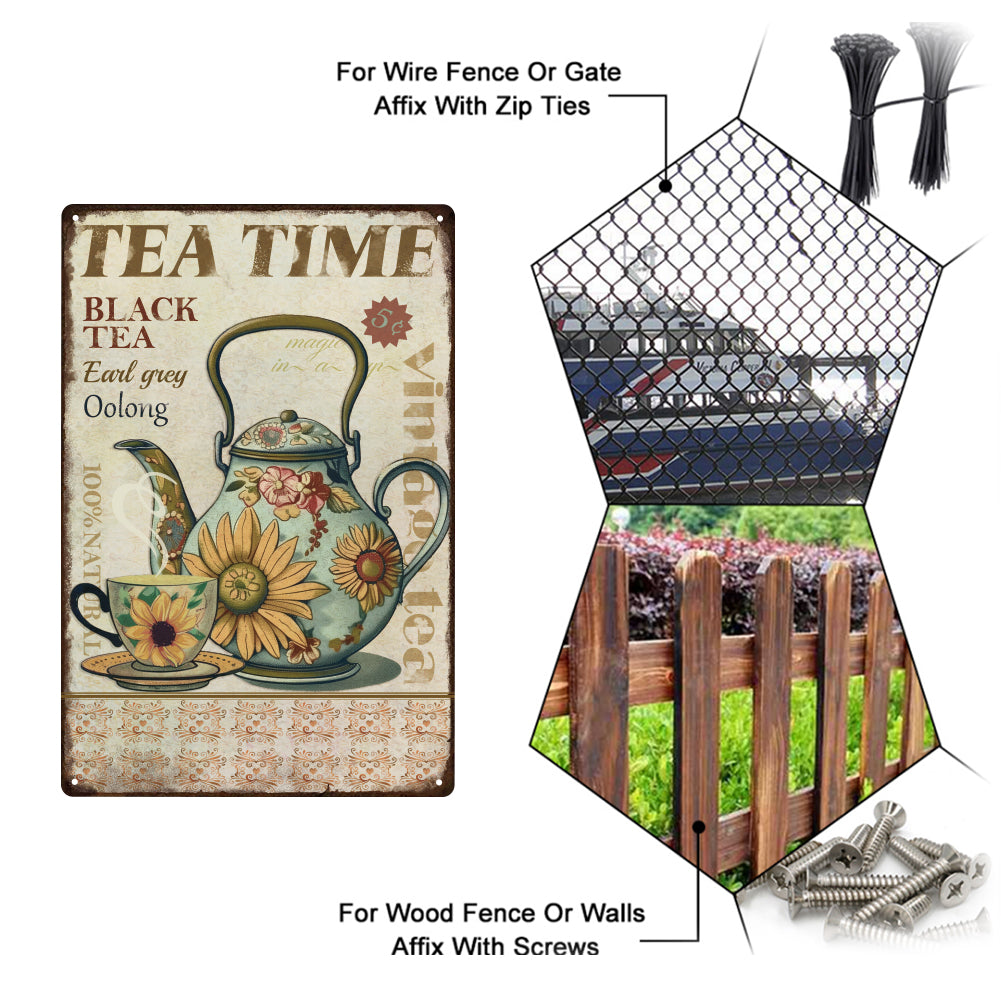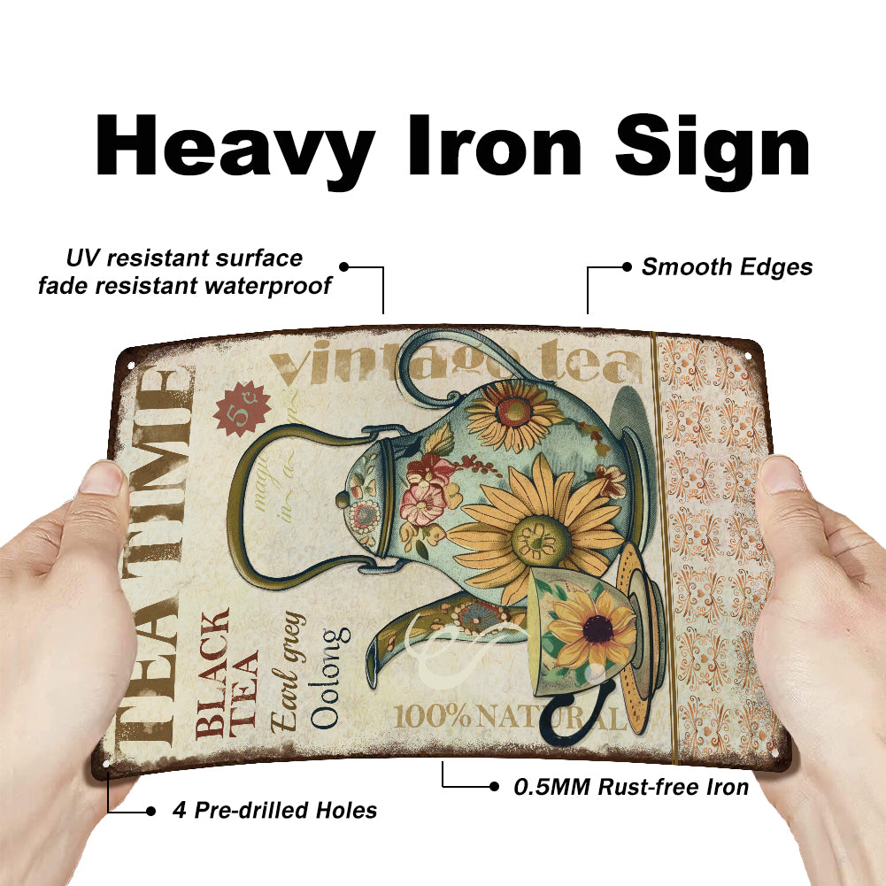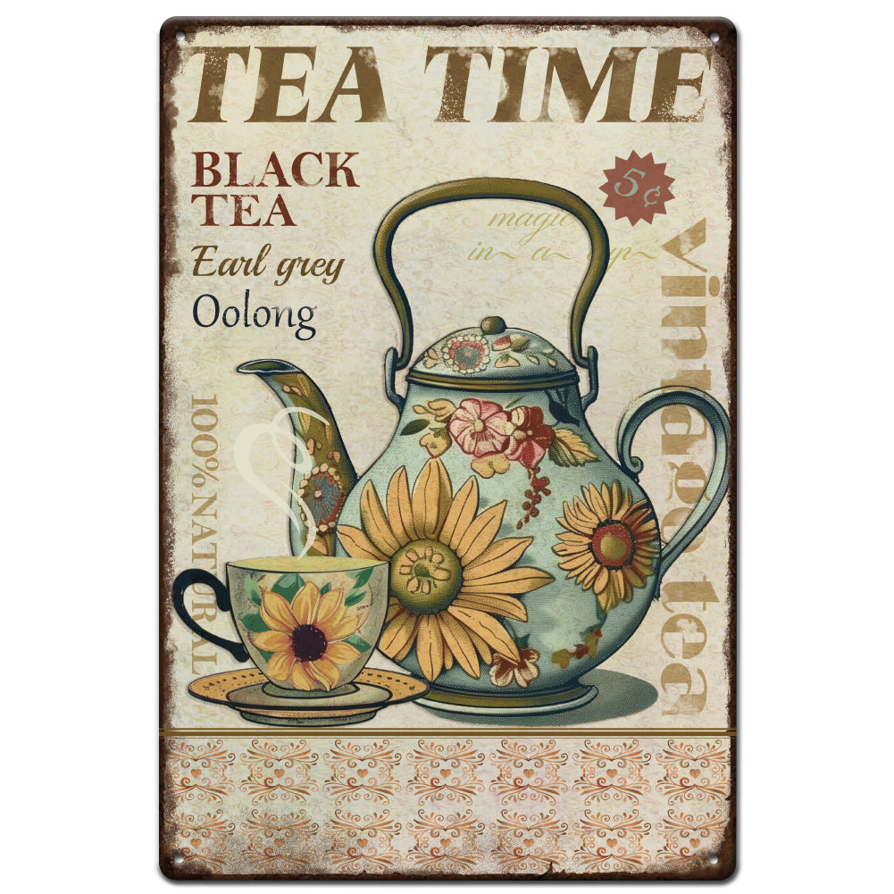 Vintage Metal Tin Sign, Iron Wall Decor for Bars, Restaurants, Cafe Pubs, Rectangle, Afternoon Tea