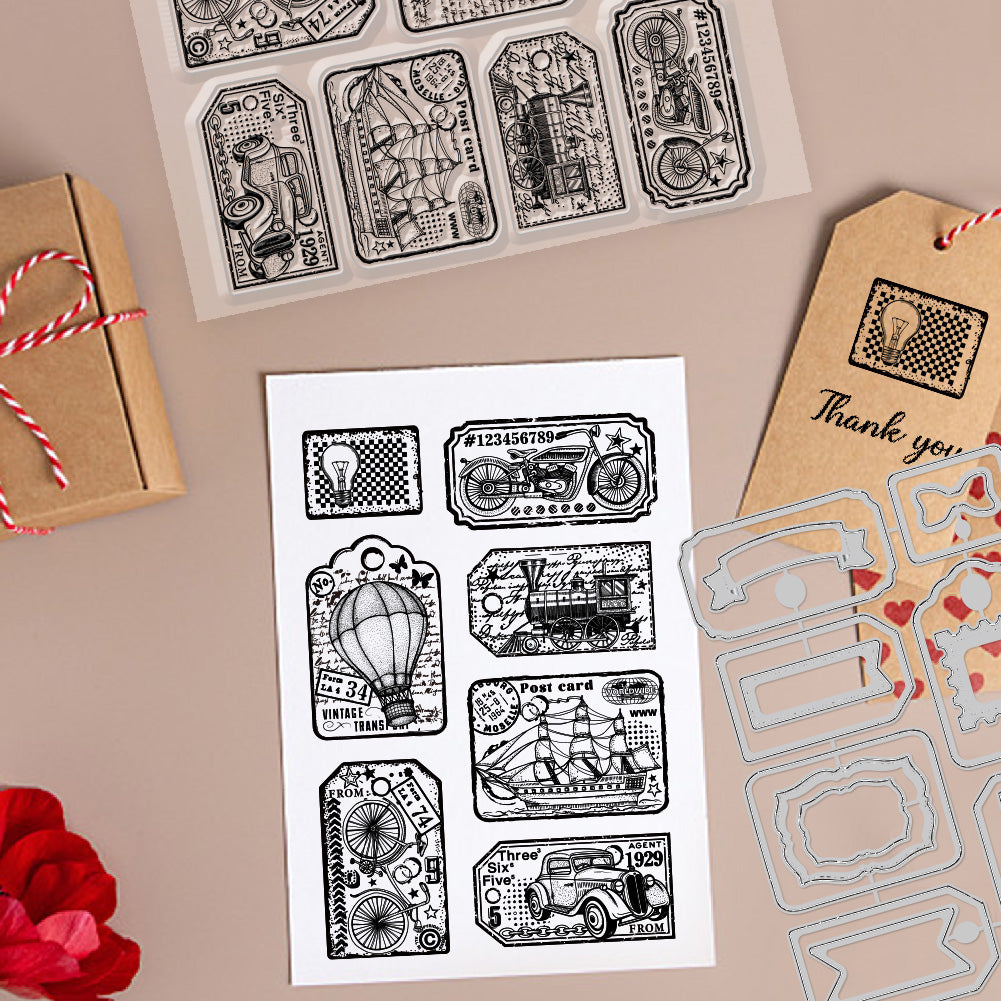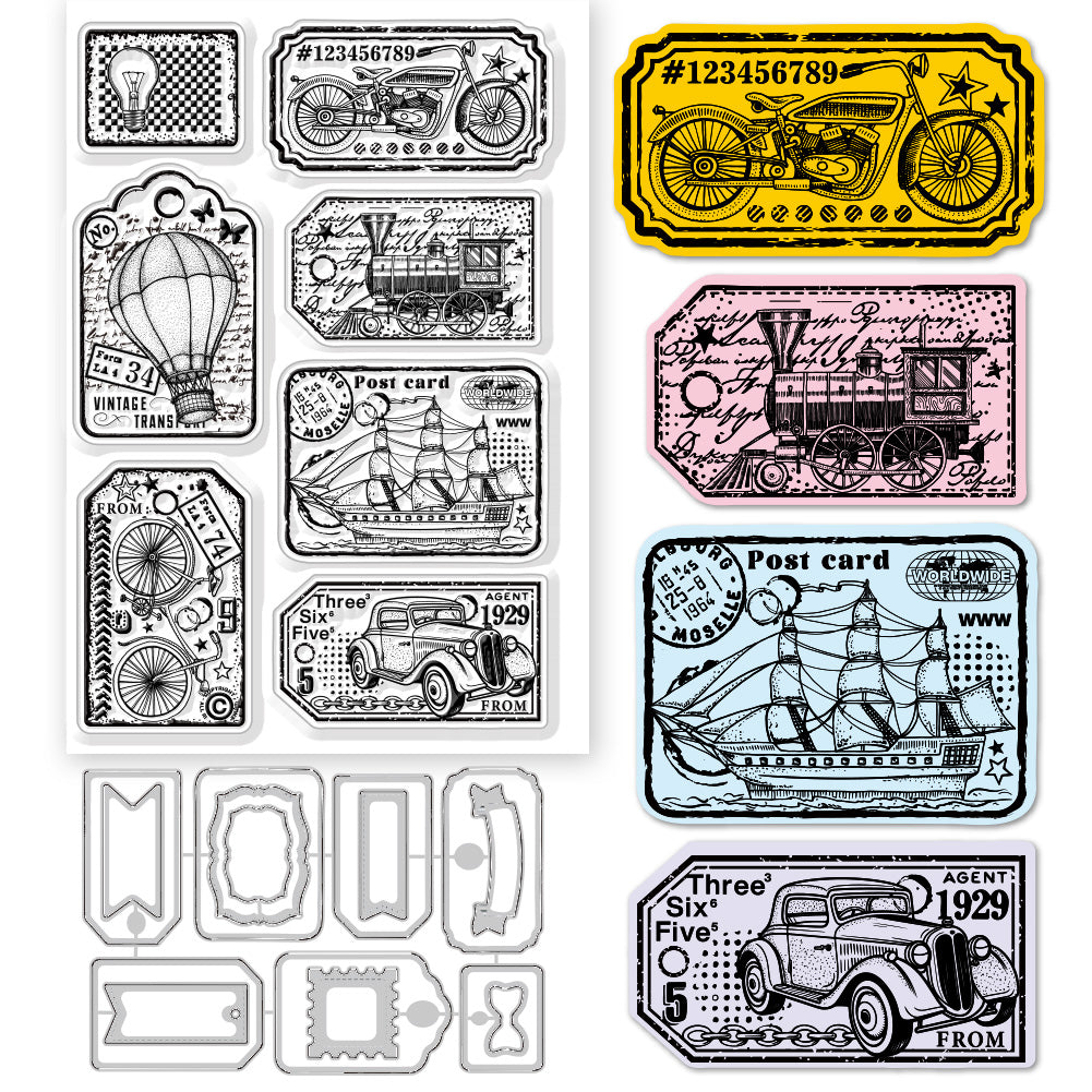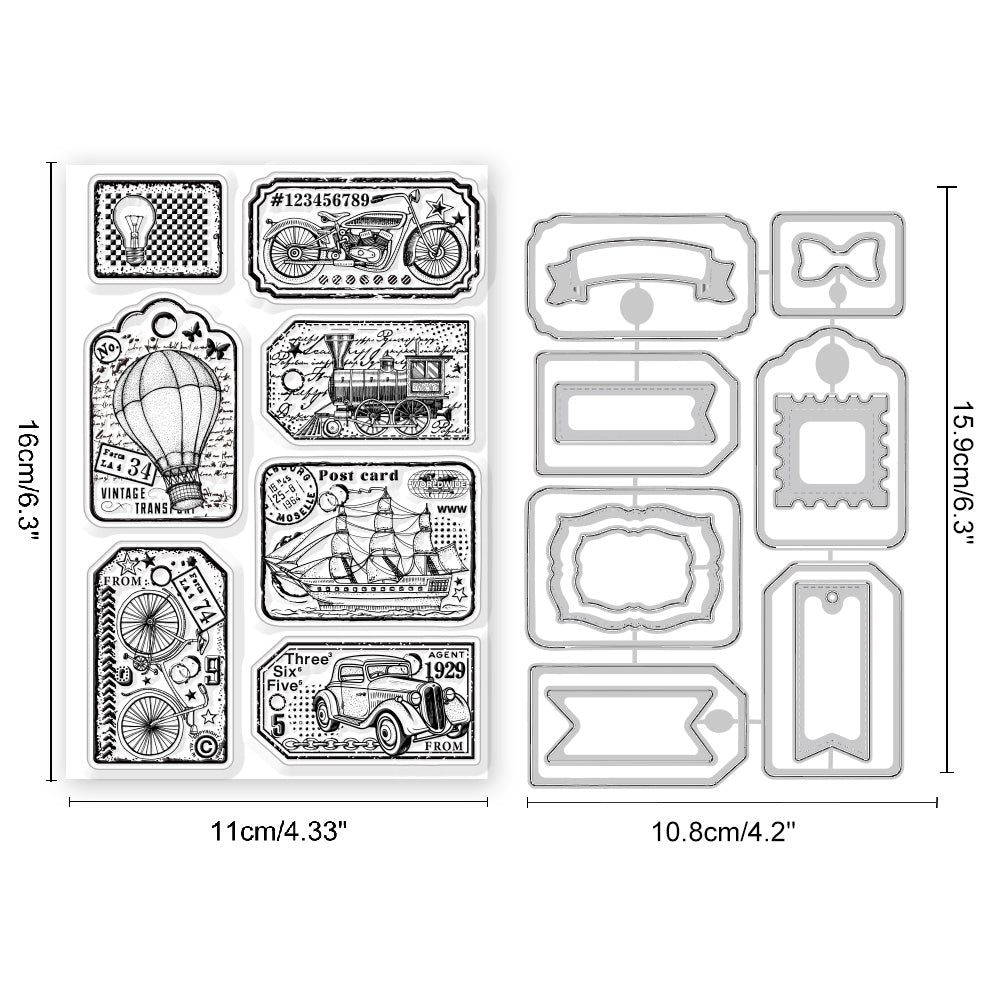 1 Sheet Custom PVC Plastic Clear Stamps, with 1Pc Carbon Steel Cutting Dies Stencils, for DIY Scrapbooking, Photo Album Decorative, Cards Making, Vehicle