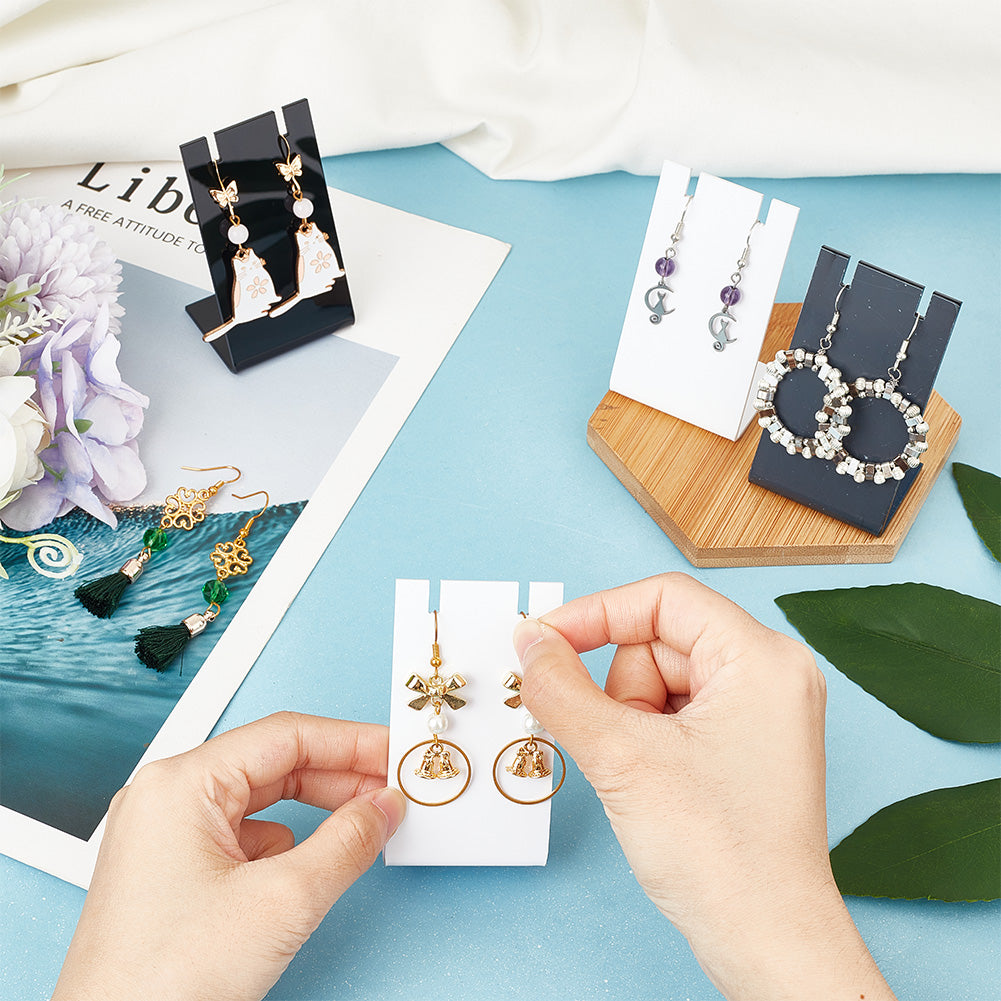 12Pcs 2 Colors Acrylic Slant Back Earring Display Stands, Single Earring Display Rack, Rectangle, Mixed Color