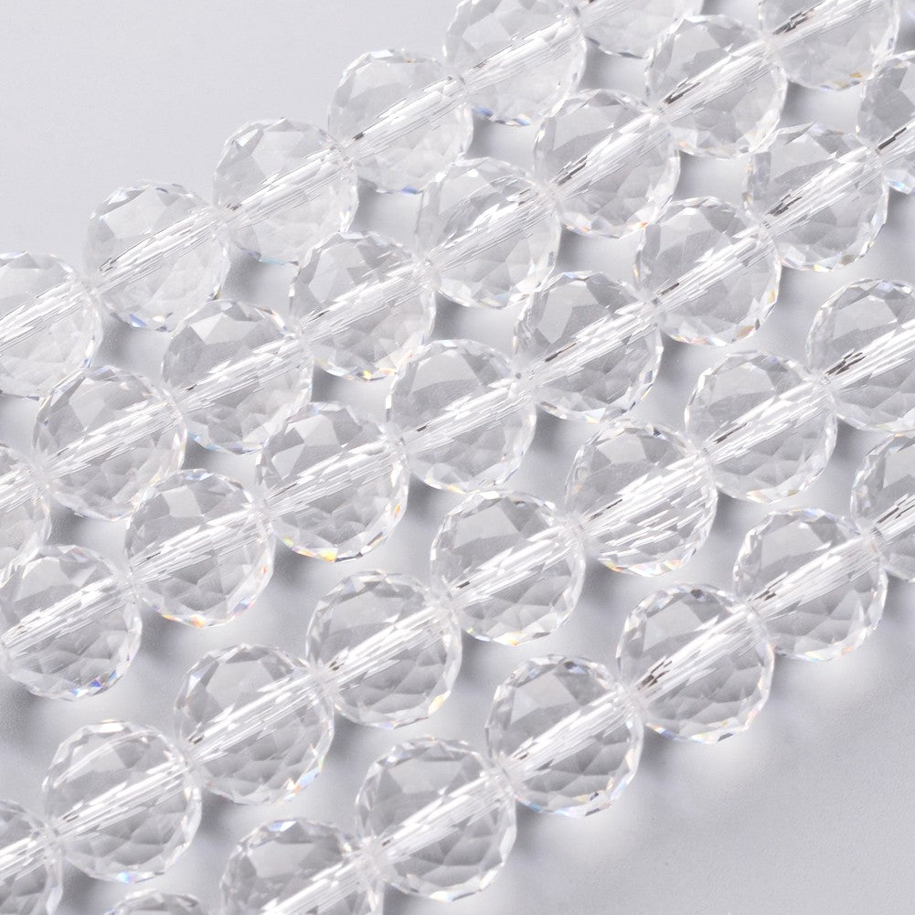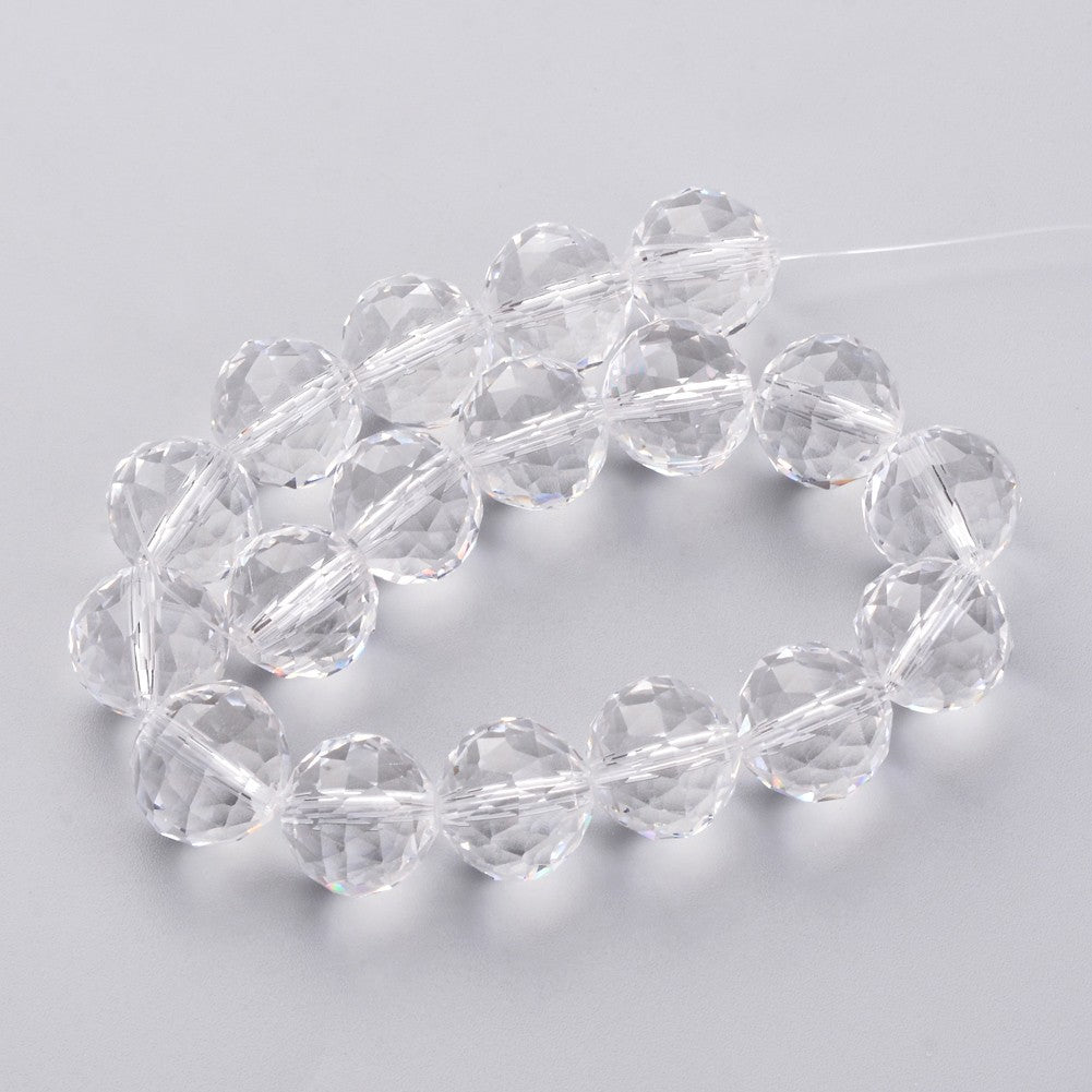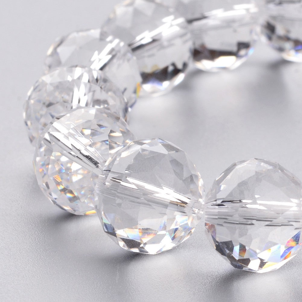 Glass Bead Strands, Faceted, Round, Clear, 13.5mm, Hole: 2mm, about 18pcs/strand, 9 inch(23cm)