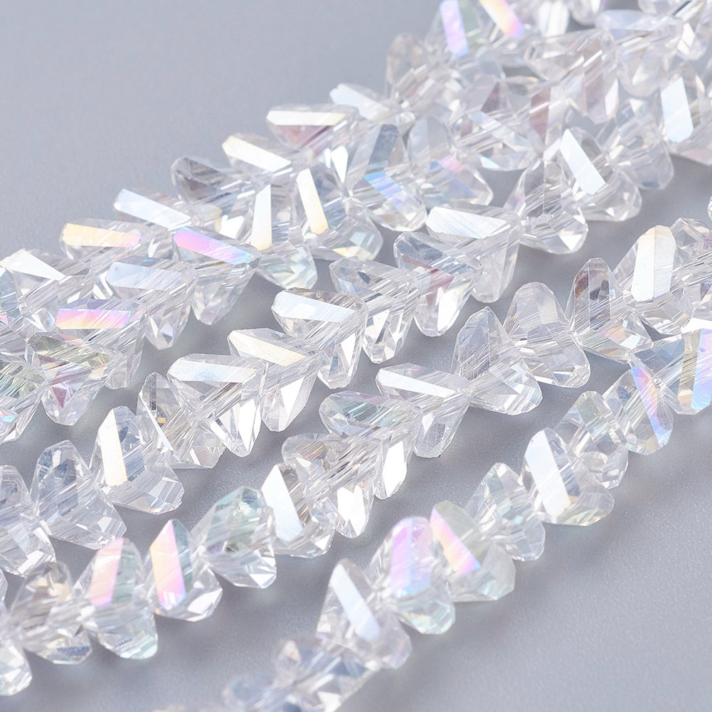 Electroplate Glass Beads Strands, AB Color Plated, Faceted, Triangle, Clear AB