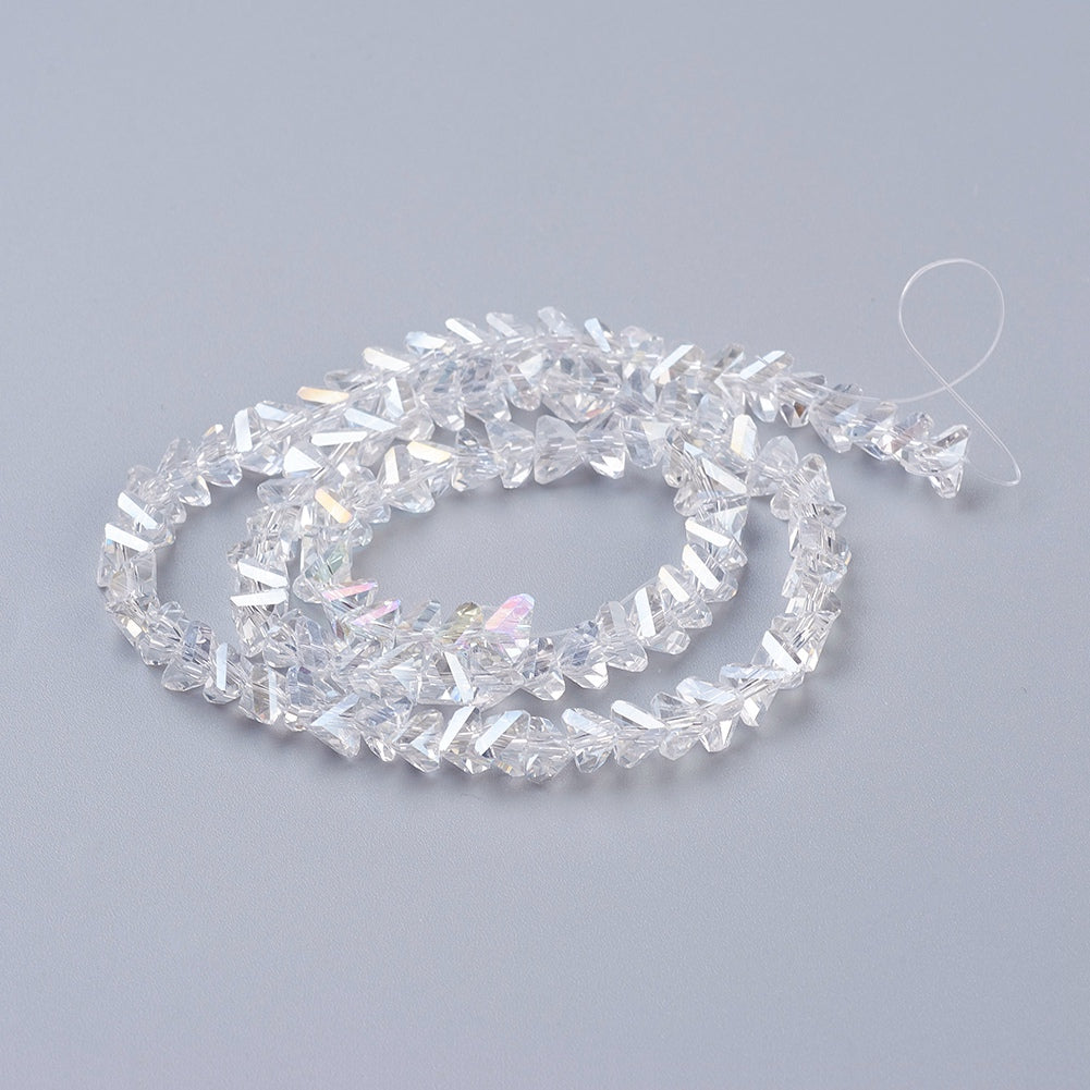 Electroplate Glass Beads Strands, AB Color Plated, Faceted, Triangle, Clear AB, 4.5x5x6mm, Hole: 1mm, about 88~90pcs/strand, 28~30cm, 10Strand/Set