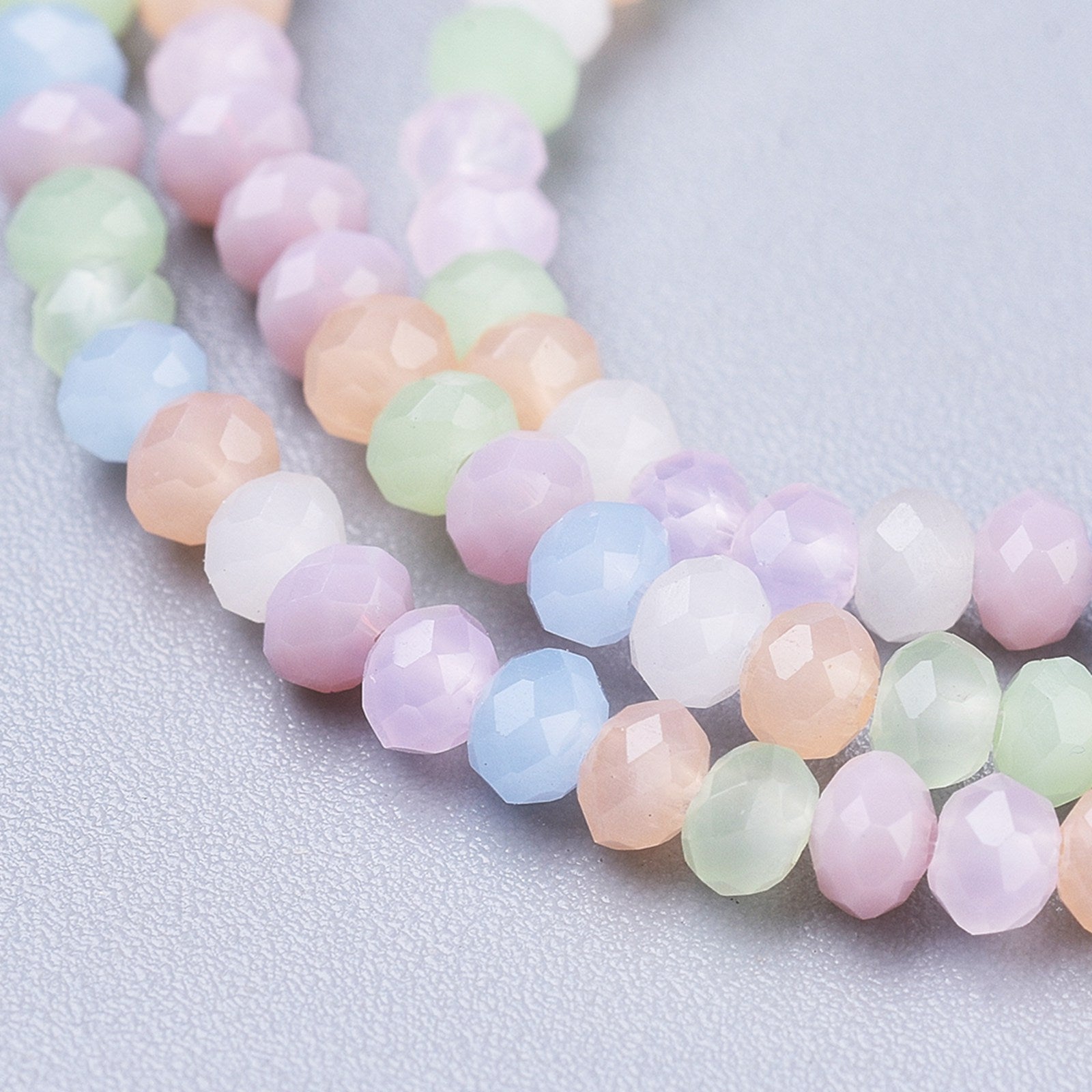 Opaque Glass Beads Strands, Faceted, Rondelle, Mixed Color, 3x2.5mm, Hole: 0.5mm, about 185pcs/strand, 16.54 inch(42cm), 10Strands/Set