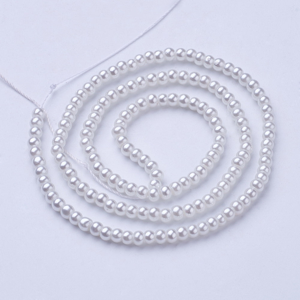 Glass Pearl Beads Strands, Pearlized, Round, White, Size: about 3~4mm in diameter, hole: 1mm, about 220~230pcs/str