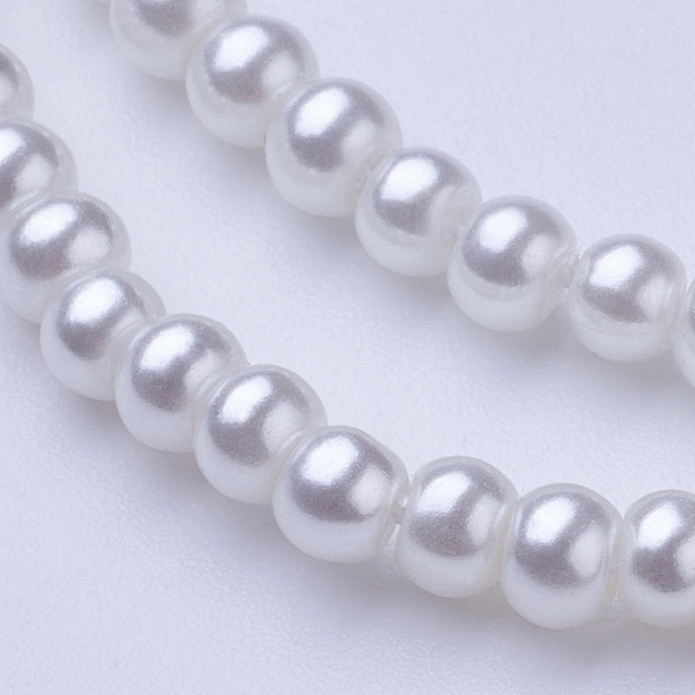 Glass Pearl Beads Strands, Pearlized, Round, White