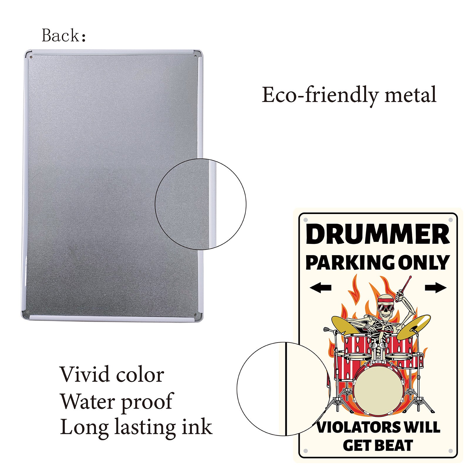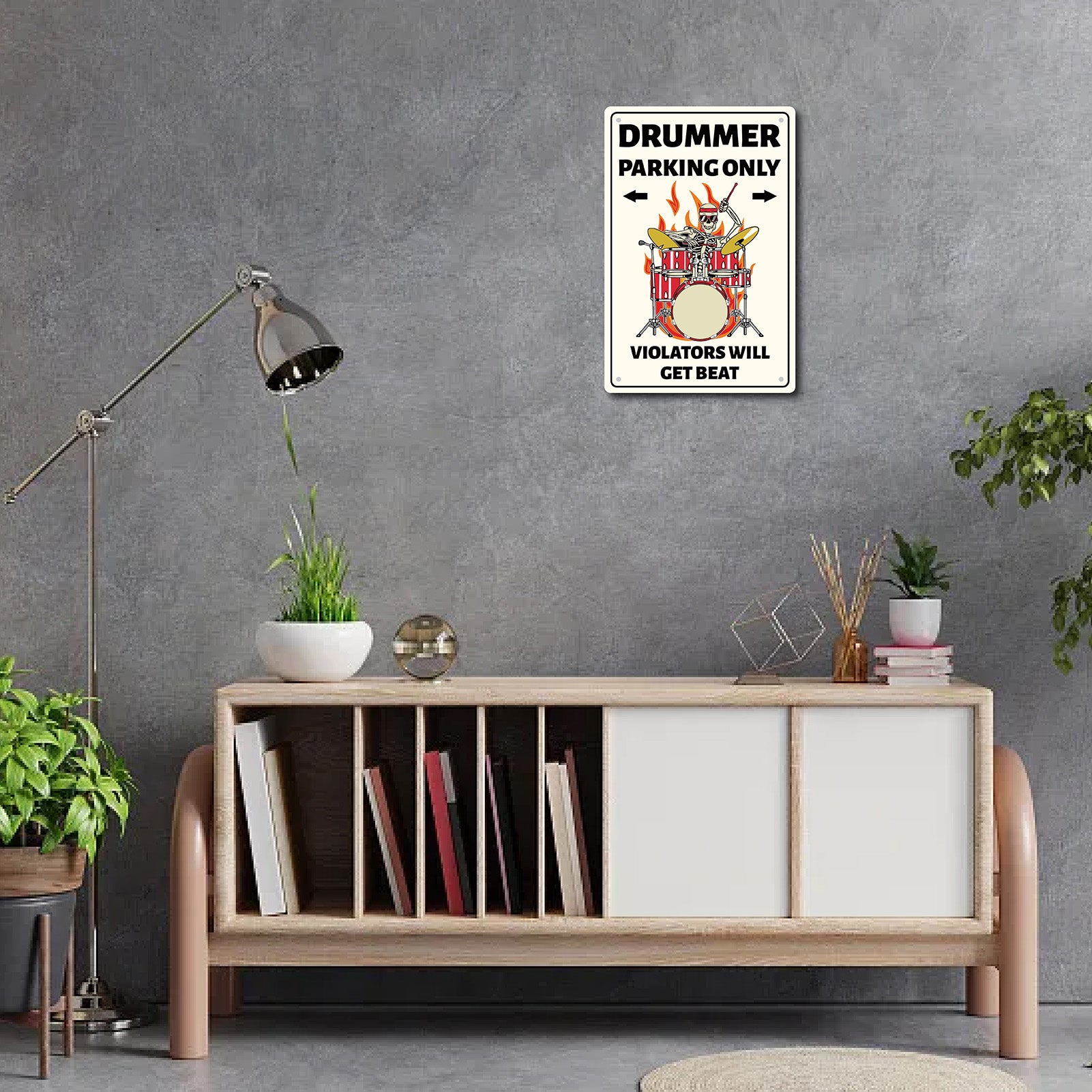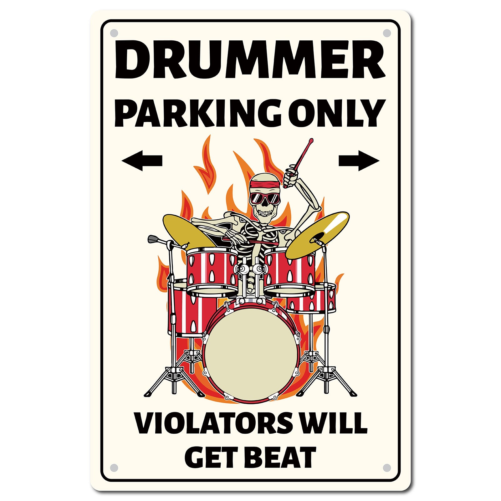 Iron Sign Posters, for Home Wall Decoration, Rectangle with Word Drummer Parking Only, Skull Pattern