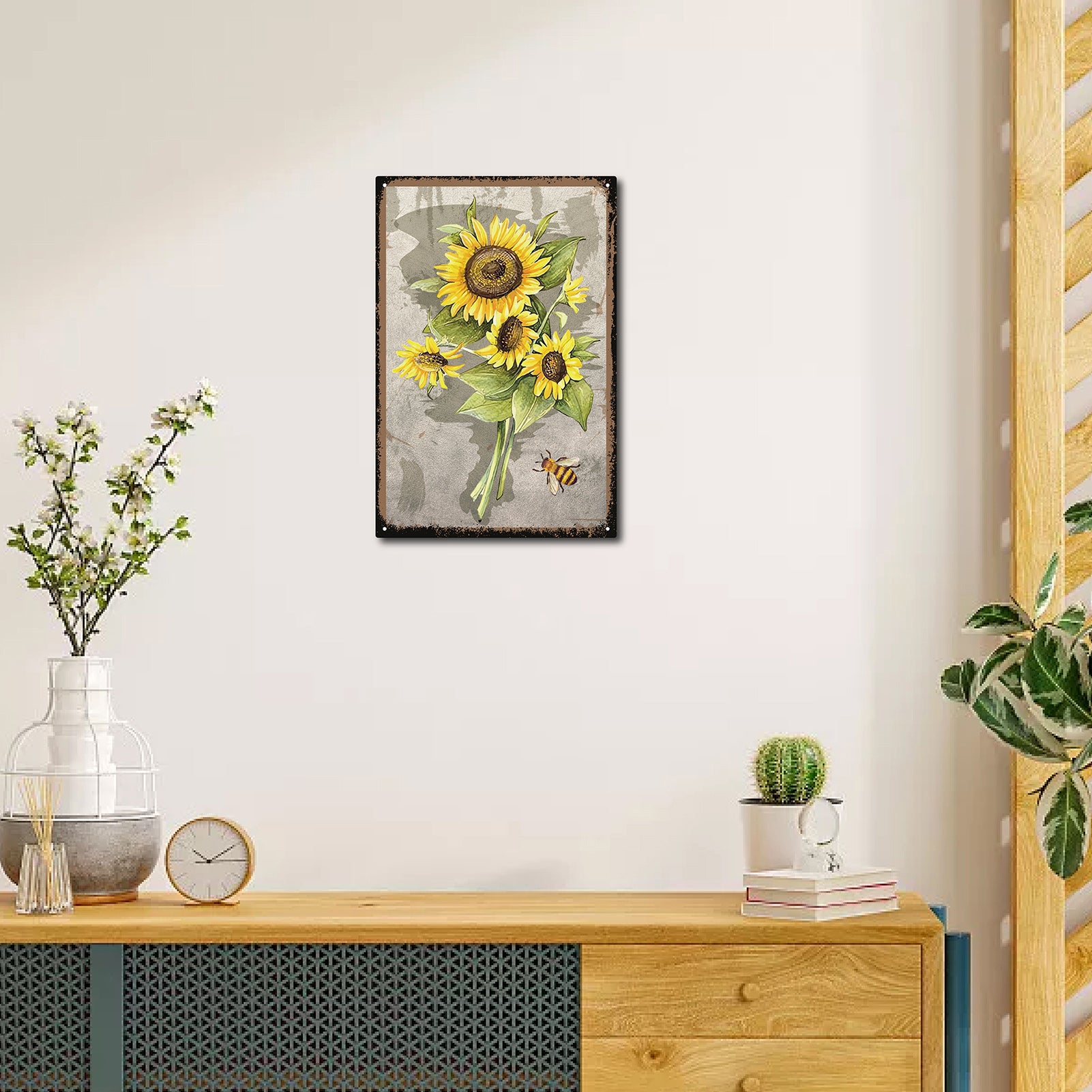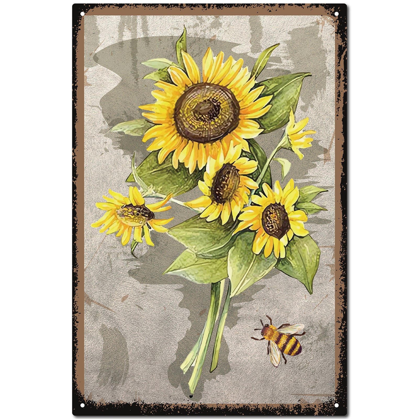 Vintage Metal Iron Tin Sign Poster, Wall Decor for Bars, Restaurants, Cafes Pubs, Rectangle, Flower