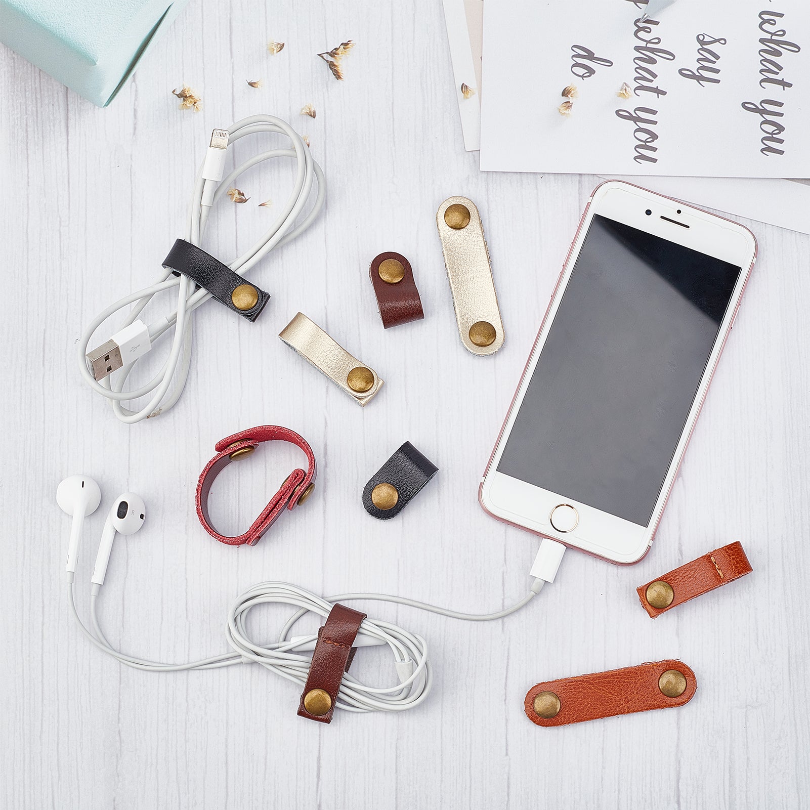 Cattlehide Cable Straps, Management Cable Ties, for USB Cable Headphone Wire, Mixed Color