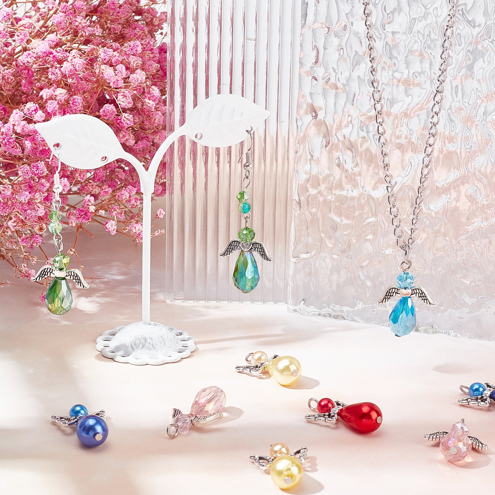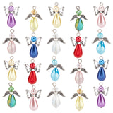 30Pcs 2 Style ABS Plastic & Acrylic Imitation Pearl Angel Pendants, with Alloy Wing Beads, for Wedding Decoration, Mixed Color