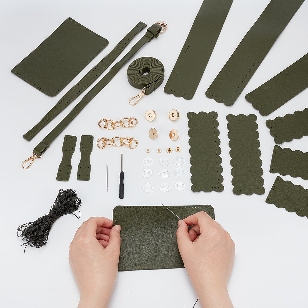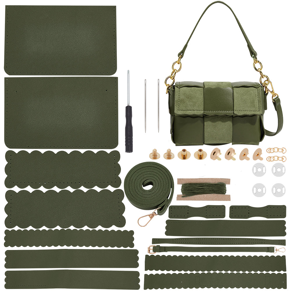 DIY PU Leather Braided Women's Crossbody Handbag Making Kits, including Fabrics, Chain Crossbody Strap, Magnetic Clasps, Screwback Rivets, Screwdriver, Thread, Needle, Dark Olive Green