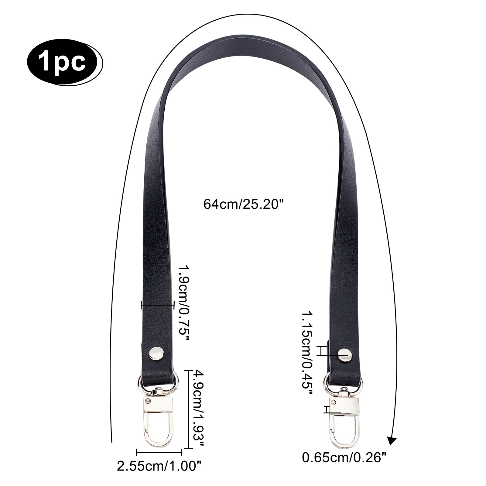 Cowhide Leather Bag Handles, with Alloy Swivel Clasps, for Bag Replacement Accessories, Black, 64x1.9x1.15cm