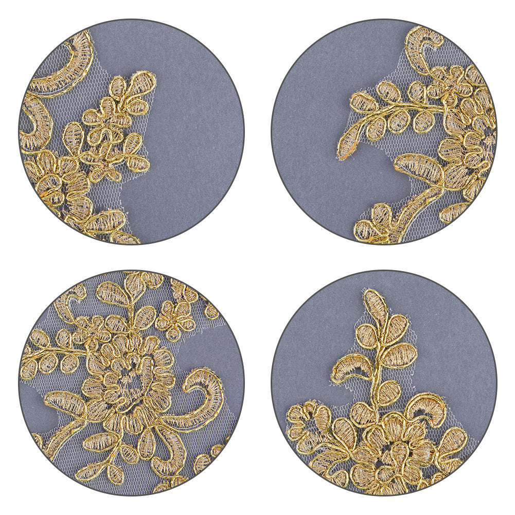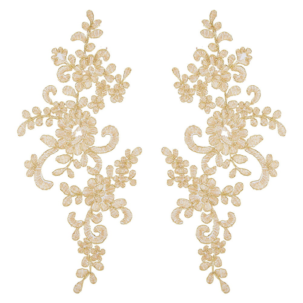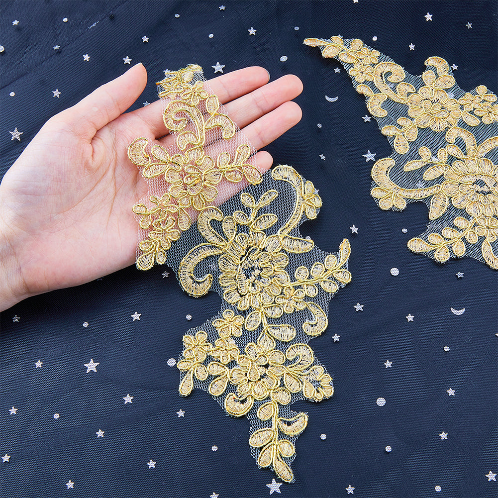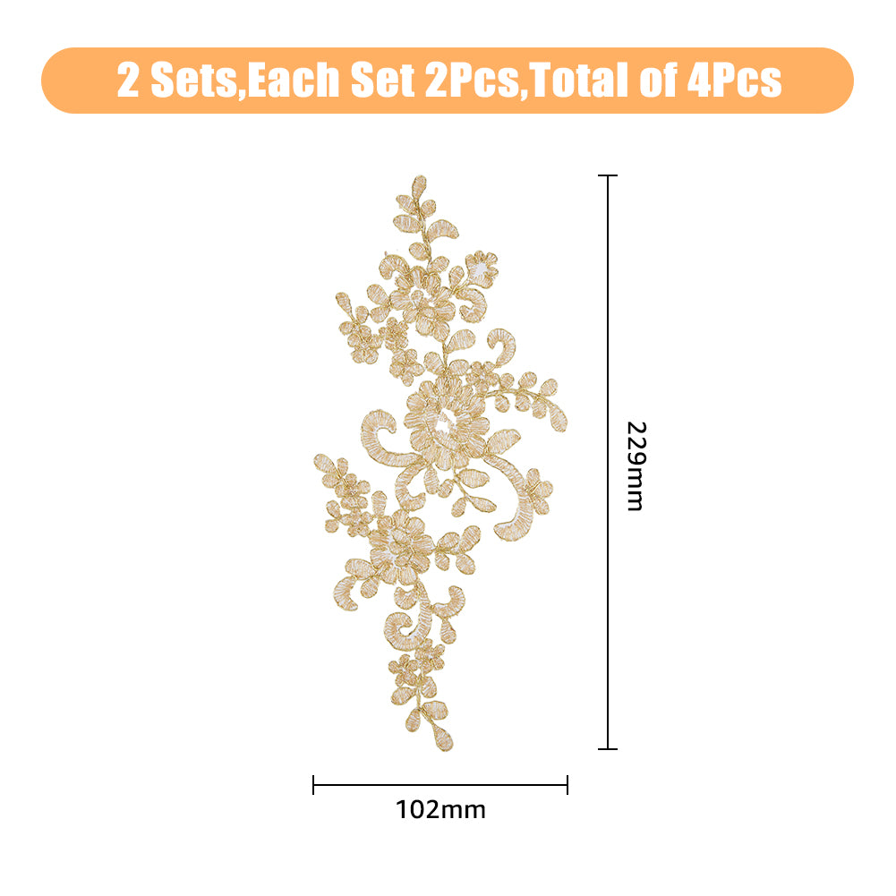 Computerized Embroidery Polyester Flower Appliques, Sew on Ornament Accessories, Goldenrod, 229x102x1mm, 2pcs/set
