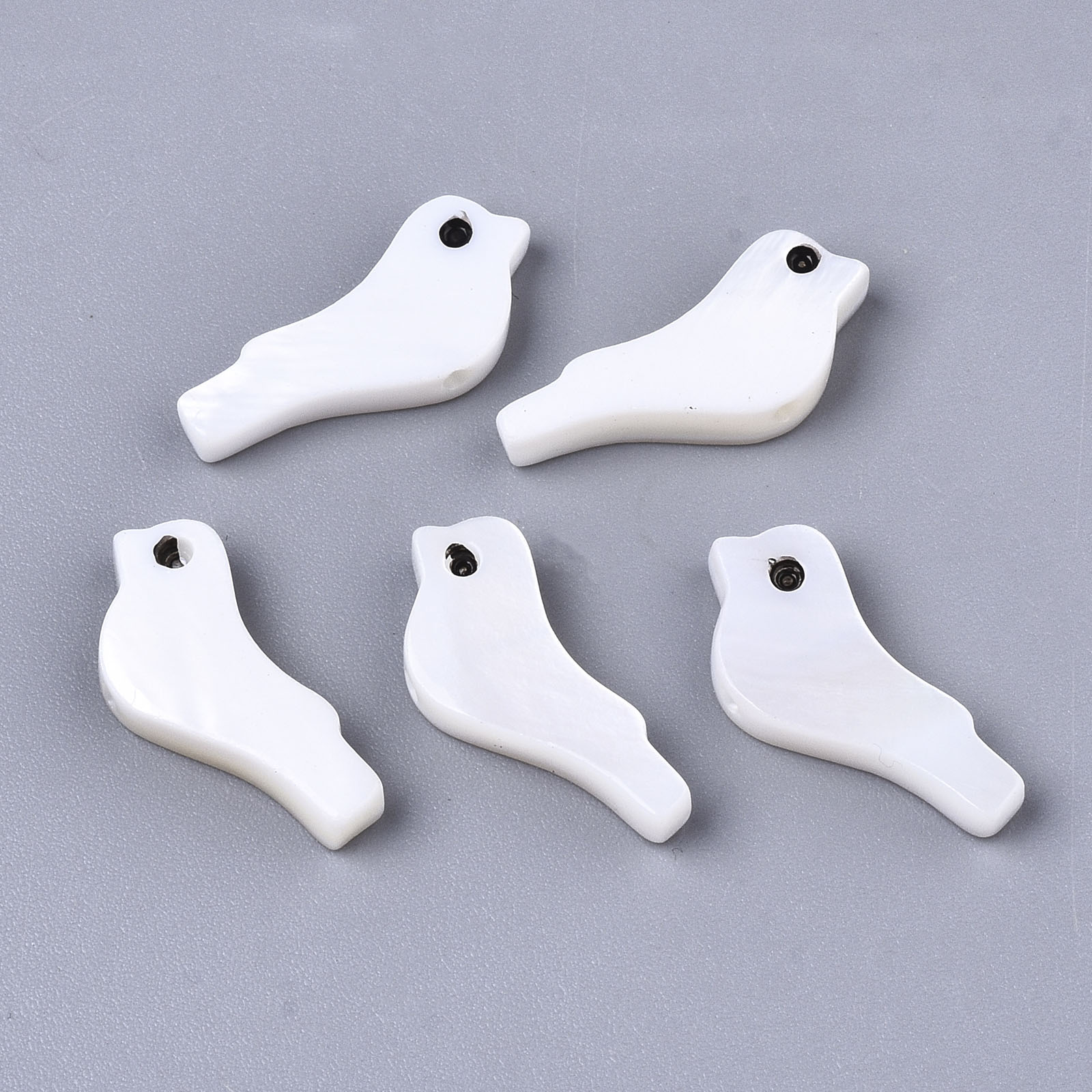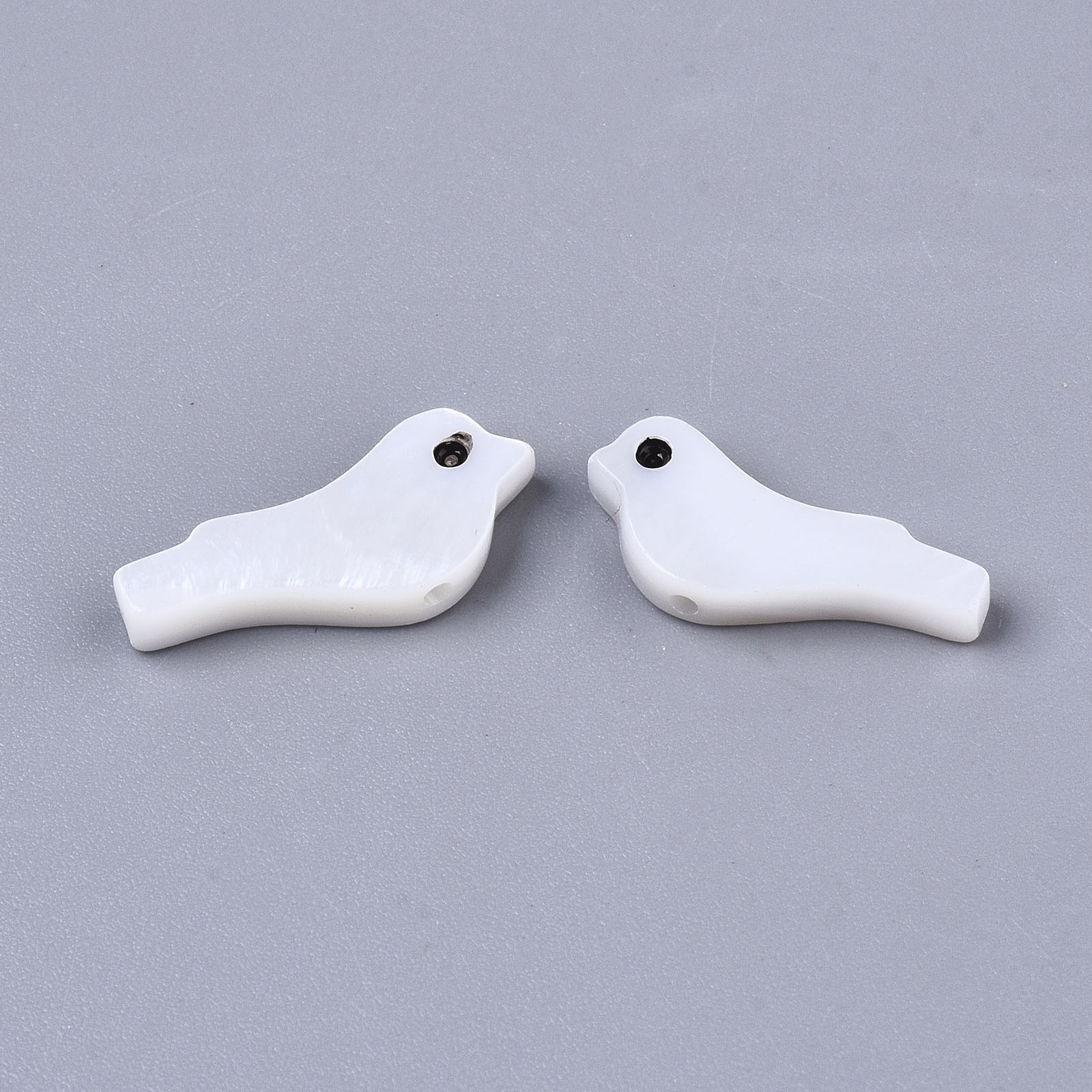 Natural Freshwater Shell Beads, Bird, White, 7x16.5x2.5mm, Hole: 1mm, 20pc/Set