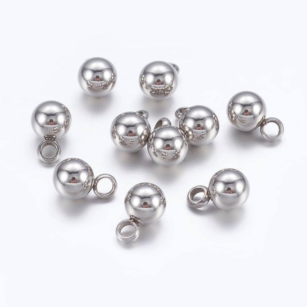 Tarnish Resistant 304 Stainless Steel Pendants, Round, Stainless Steel Color, 7.5x5mm, Hole: 1.8mm, 100pc/Set