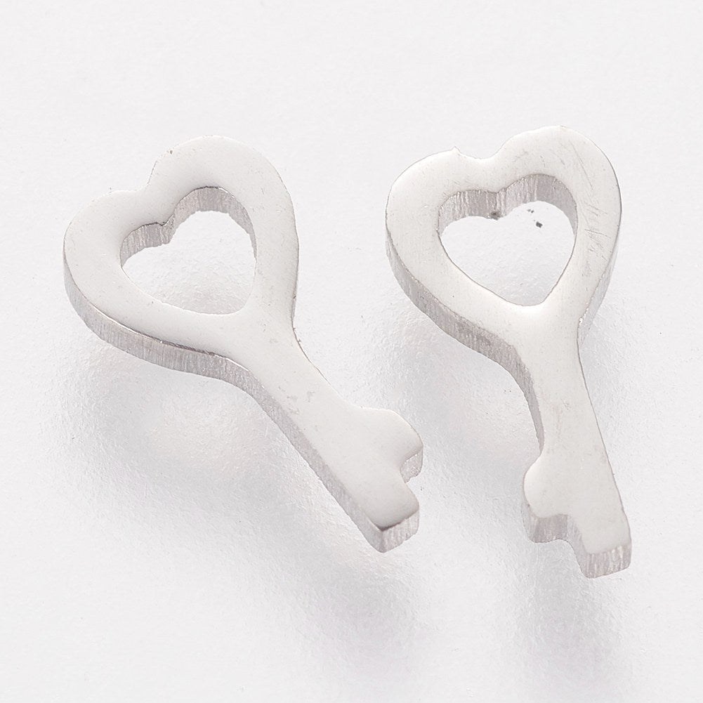 Tarnish Resistant 201 Stainless Steel Charms, Key, Stainless Steel Color