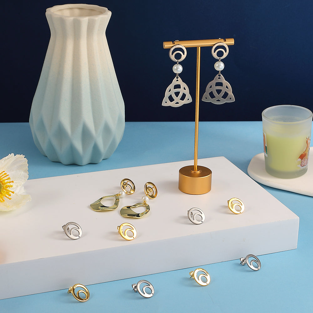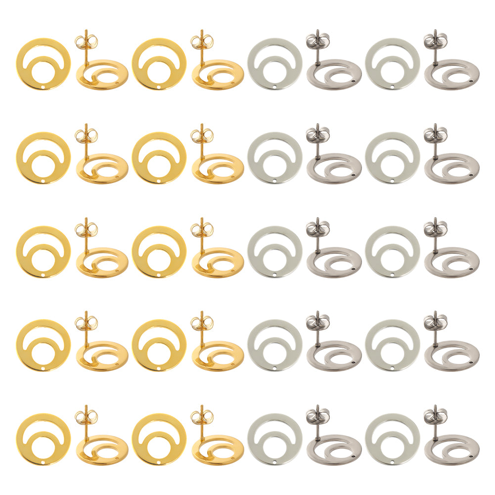 40Pcs 2 Colors 201 Stainless Steel Flat Round Stud Earring Findings, with 304 Stainless Steel Pin and Ear Nuts, Golden & Stainless Steel Color