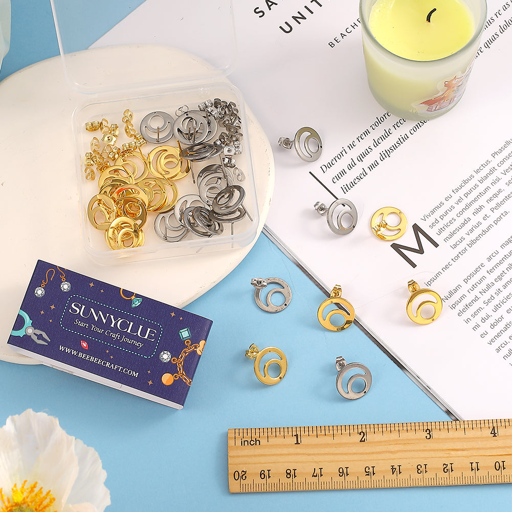 40Pcs 2 Colors 201 Stainless Steel Flat Round Stud Earring Findings, with 304 Stainless Steel Pin and Ear Nuts, Golden & Stainless Steel Color, 15mm, Hole: 1mm, Pin: 0.7mm, 20Pcs/color