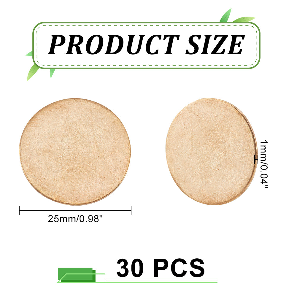 30Pcs Brass Sheets, Copper Disc, Flat Round, Gold, 25x1mm