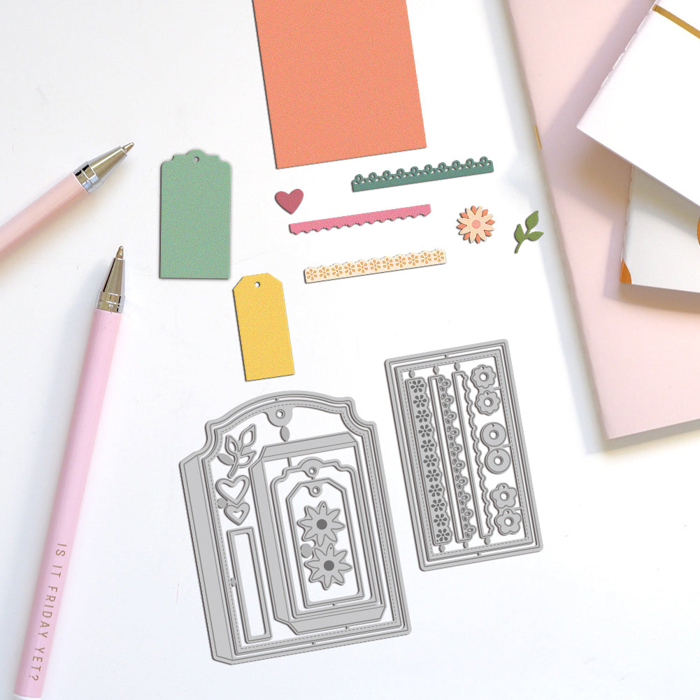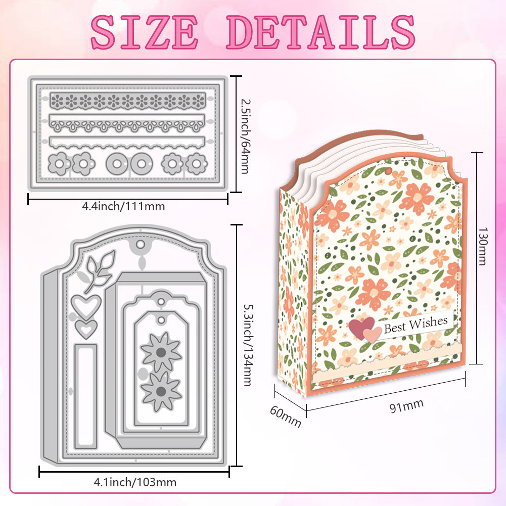 Folding Bookmark Theme Carbon Steel Cutting Dies Stencils, for DIY Scrapbooking, Photo Album, Decorative Embossing Paper Card, Greeting Card Mold, Flower, 64~134x103~111x0.8mm, 2pcs/set