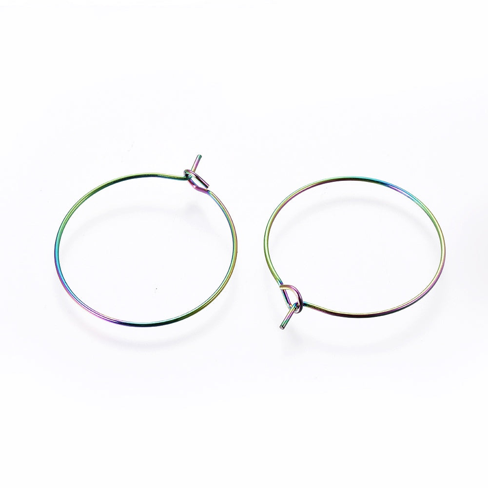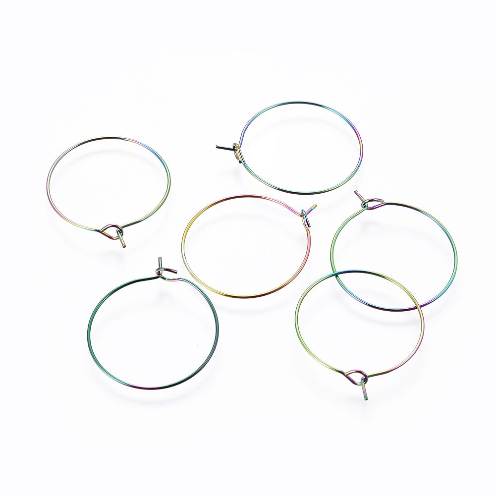 Ion Plating(IP) 304 Stainless Steel Hoop Earring Findings, Wine Glass Charms Findings, Ring, Rainbow Color, 21 Gauge, 25x0.7mm, 10pc/Set