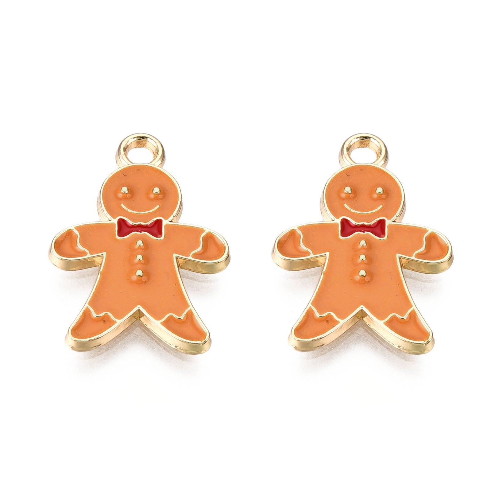 Alloy Enamel Pendants, for Christmas, Light Gold, Gingerbread Man, Dark Orange