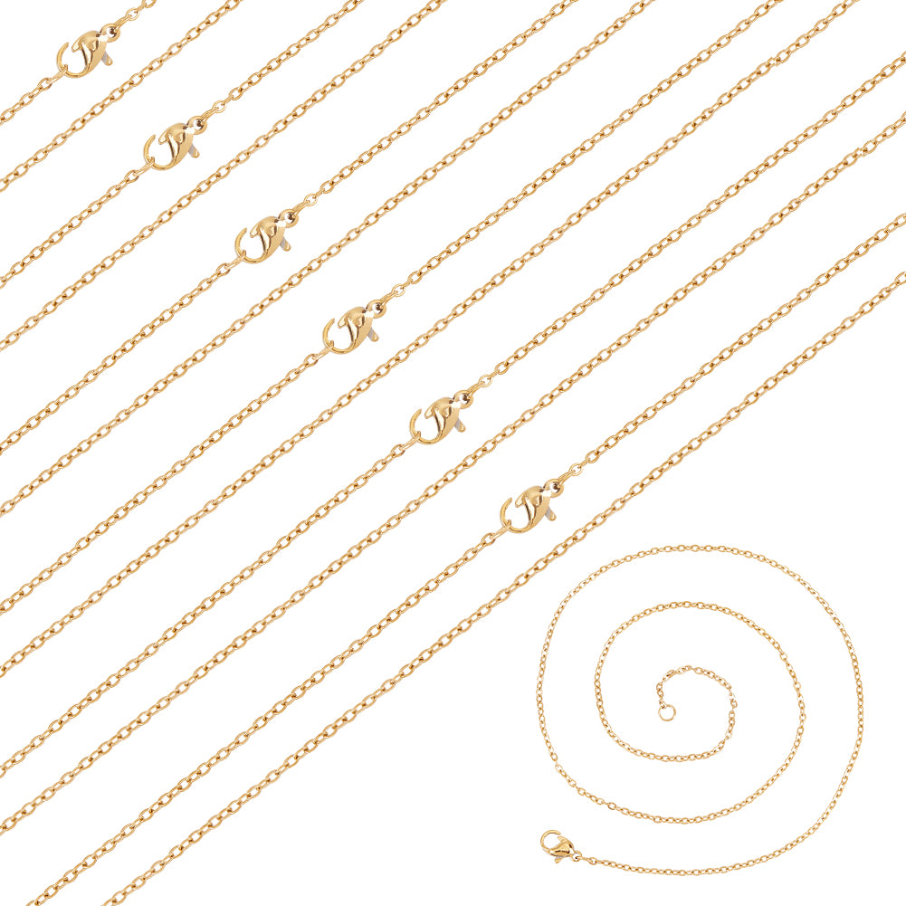20Pcs Ion Plating(IP) 304 Stainless Steel Cable Chains Necklaces Set for Men Women, Golden, 17.72 inch(450mm)