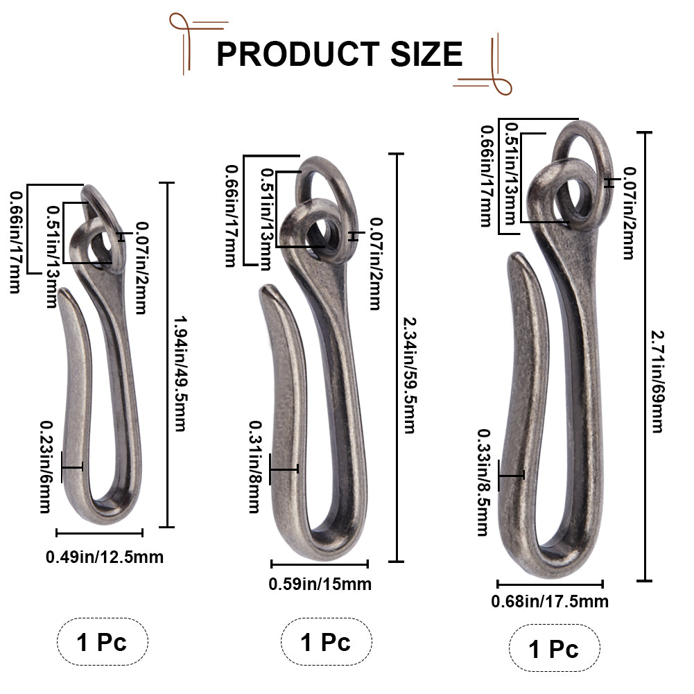 3Pcs 3 Styles Tibetan Style Alloy Hook Clasps, with Jump Rings, for Keychain Making, Antique Silver, 49.5~69x12.5~17.5x6~8.5mm, Hole: 13mm, 1pc/style