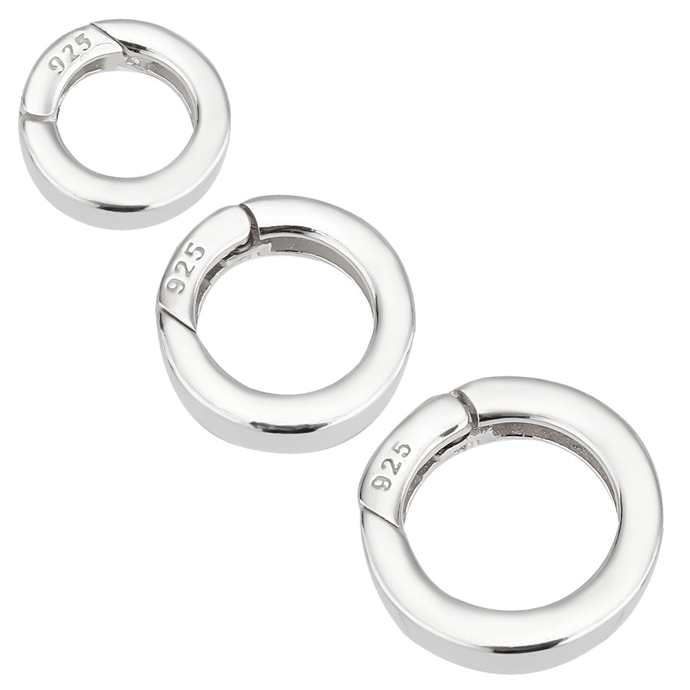 3Pcs 3 Styles 925 Sterling Silver Spring Gate Rings with 925 Stamp, Silver