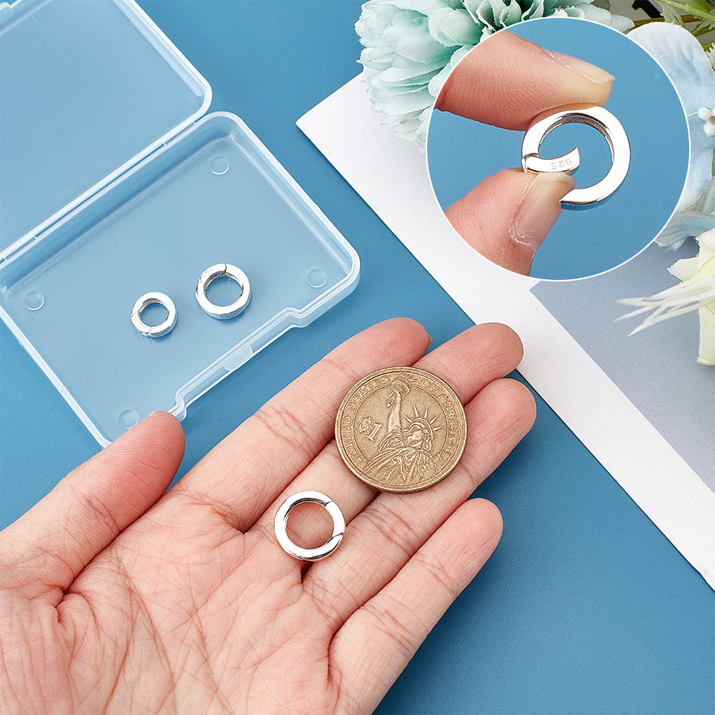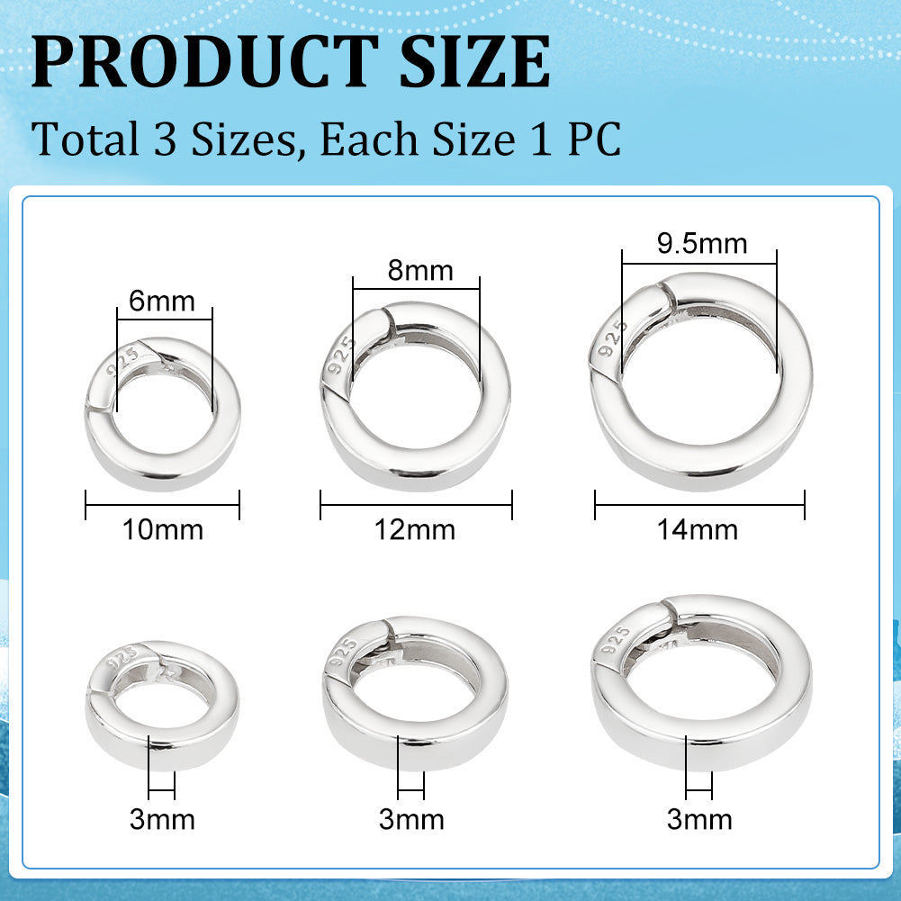 3Pcs 3 Styles 925 Sterling Silver Spring Gate Rings with 925 Stamp, Silver, 9 Gauge, 10~14x3mm, Hole: 6~9.5mm, 1pc/style