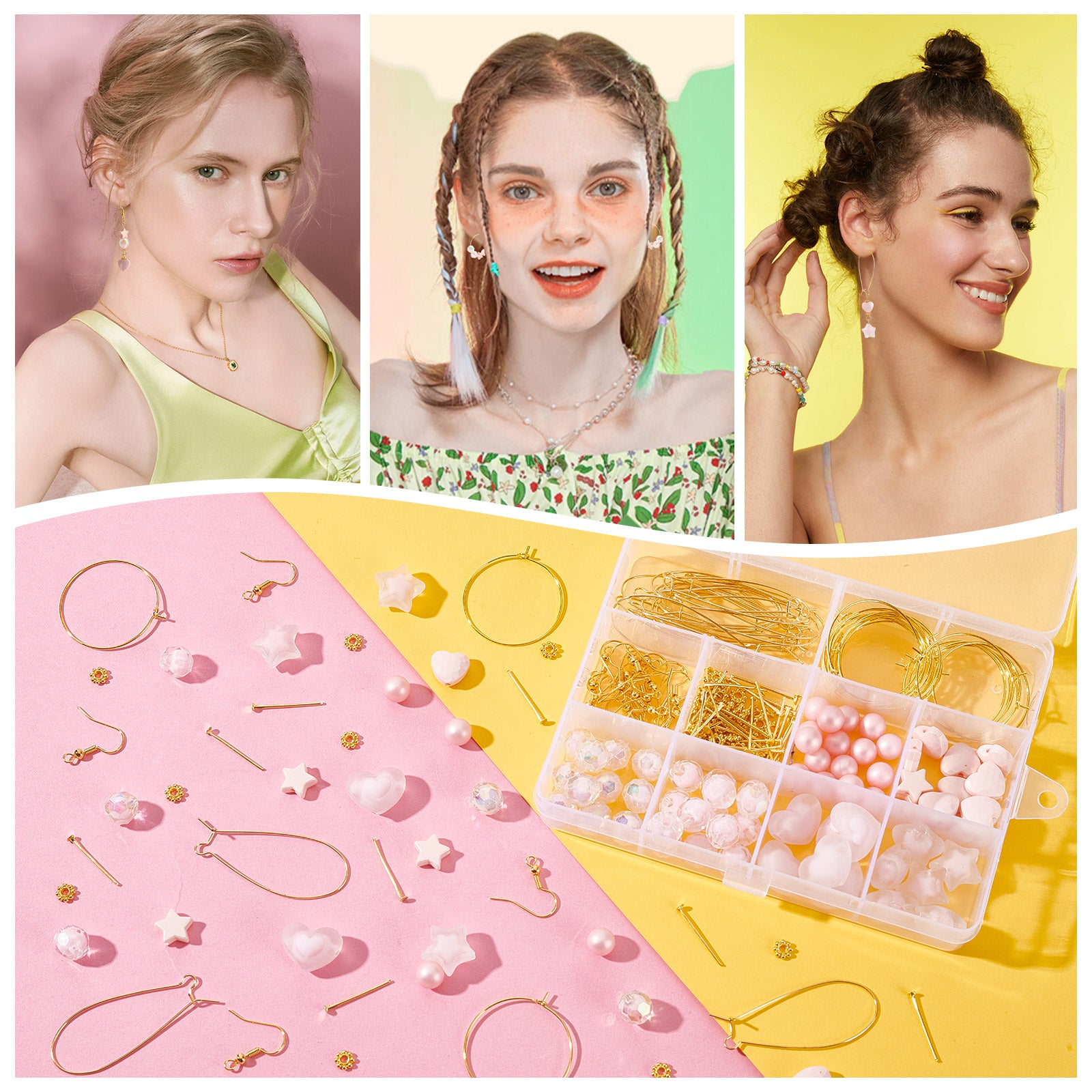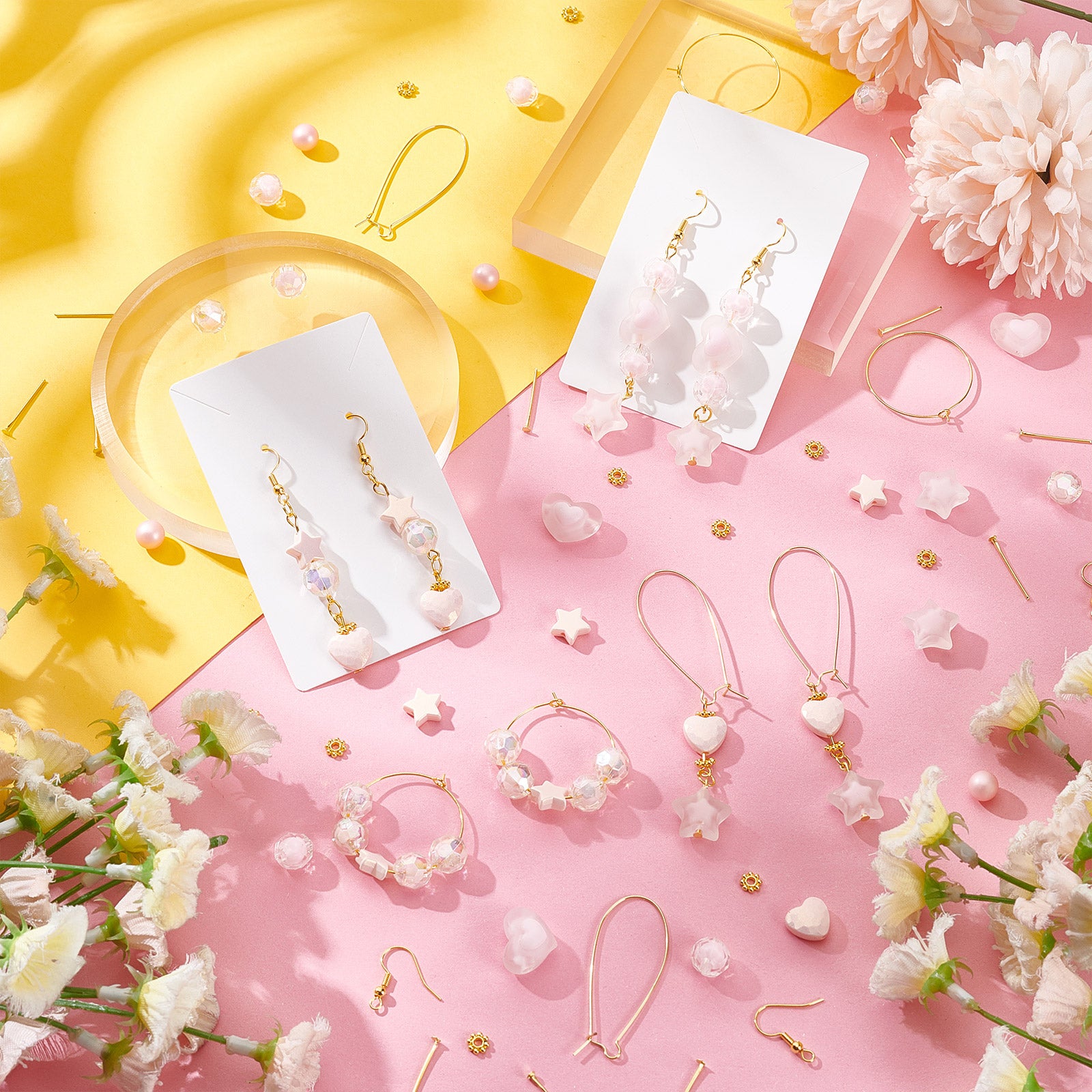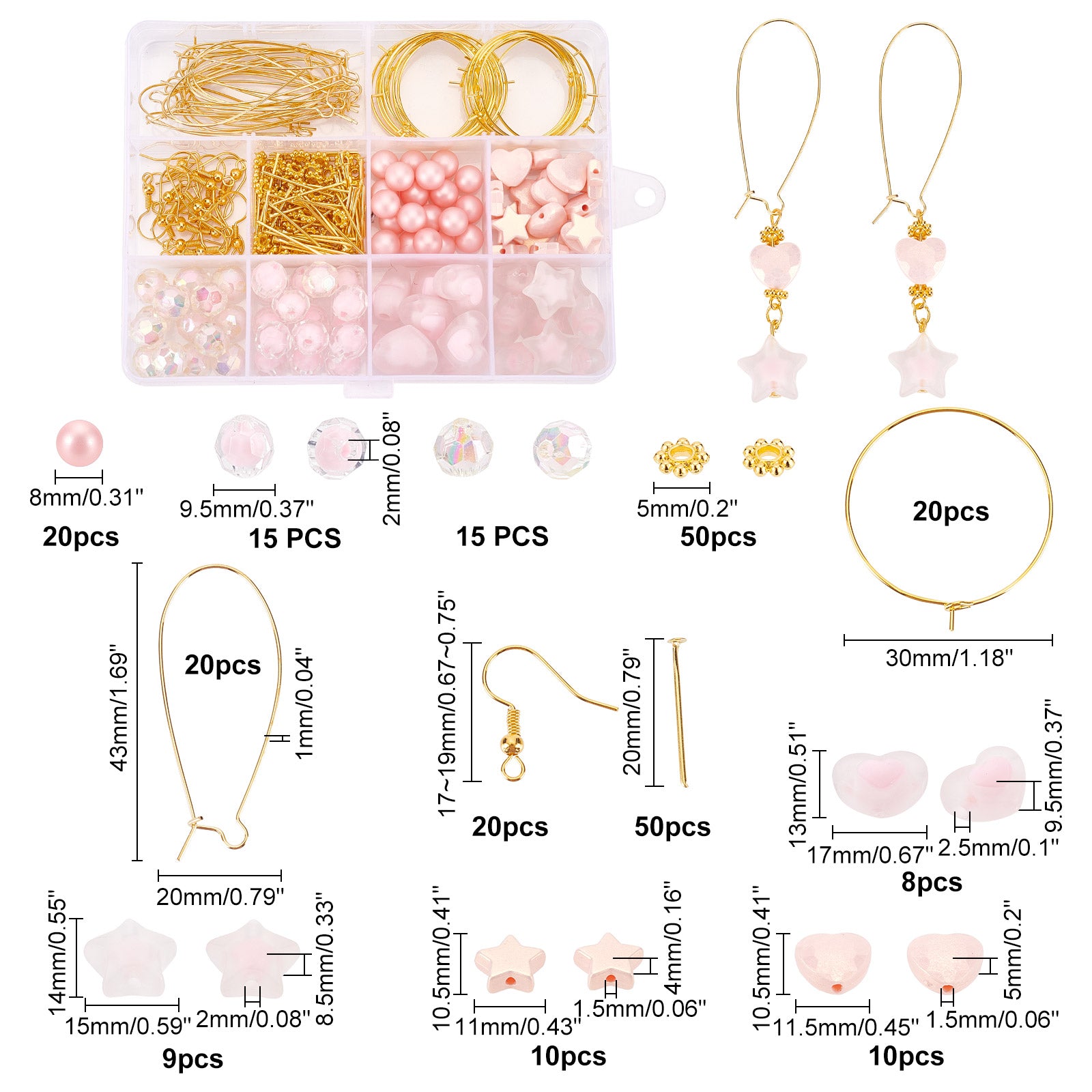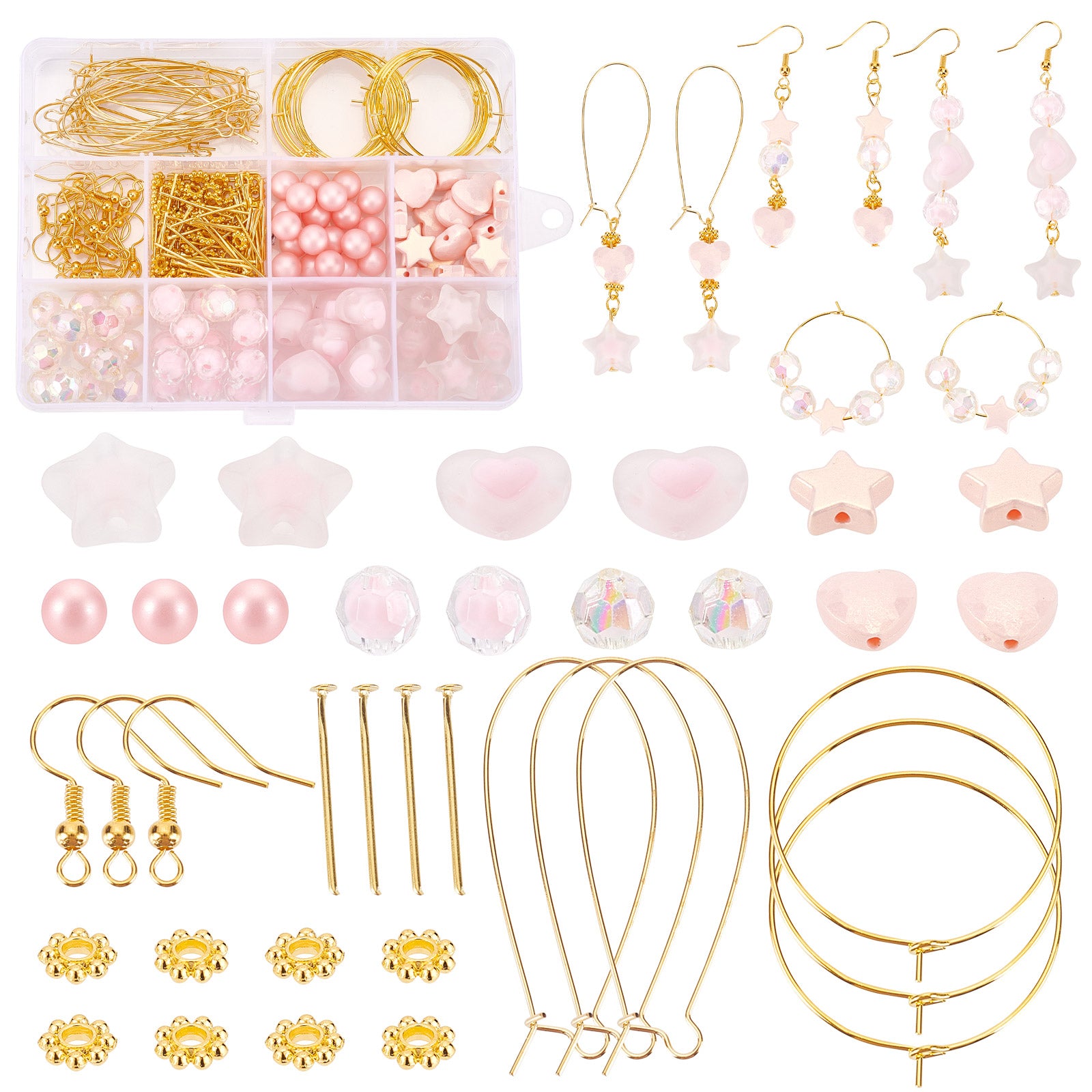 DIY Beaded Earring Making Kit, Inclduing Heart & Star & Imitation Pearl Acrylic Beads, Brass Hoop Earrings Findings & Earring Hooks, Pink, 247Pcs/box