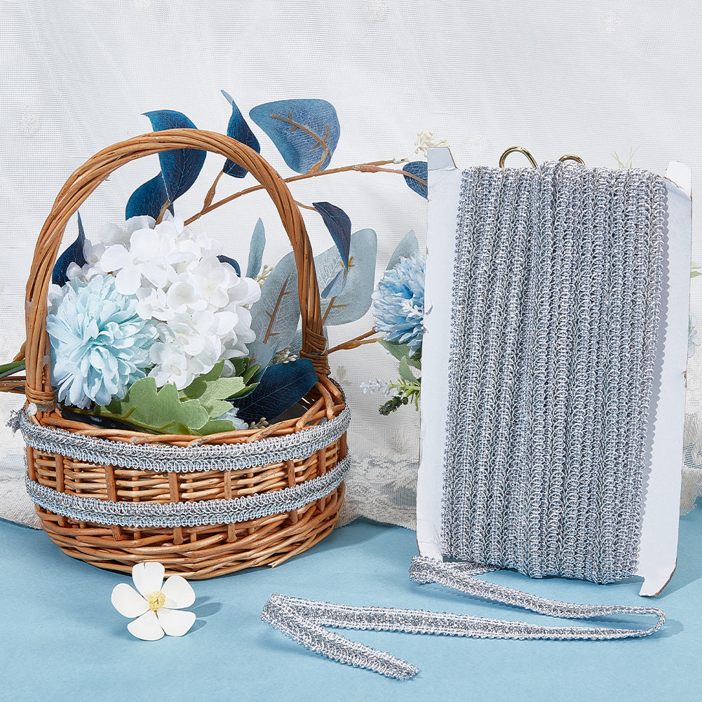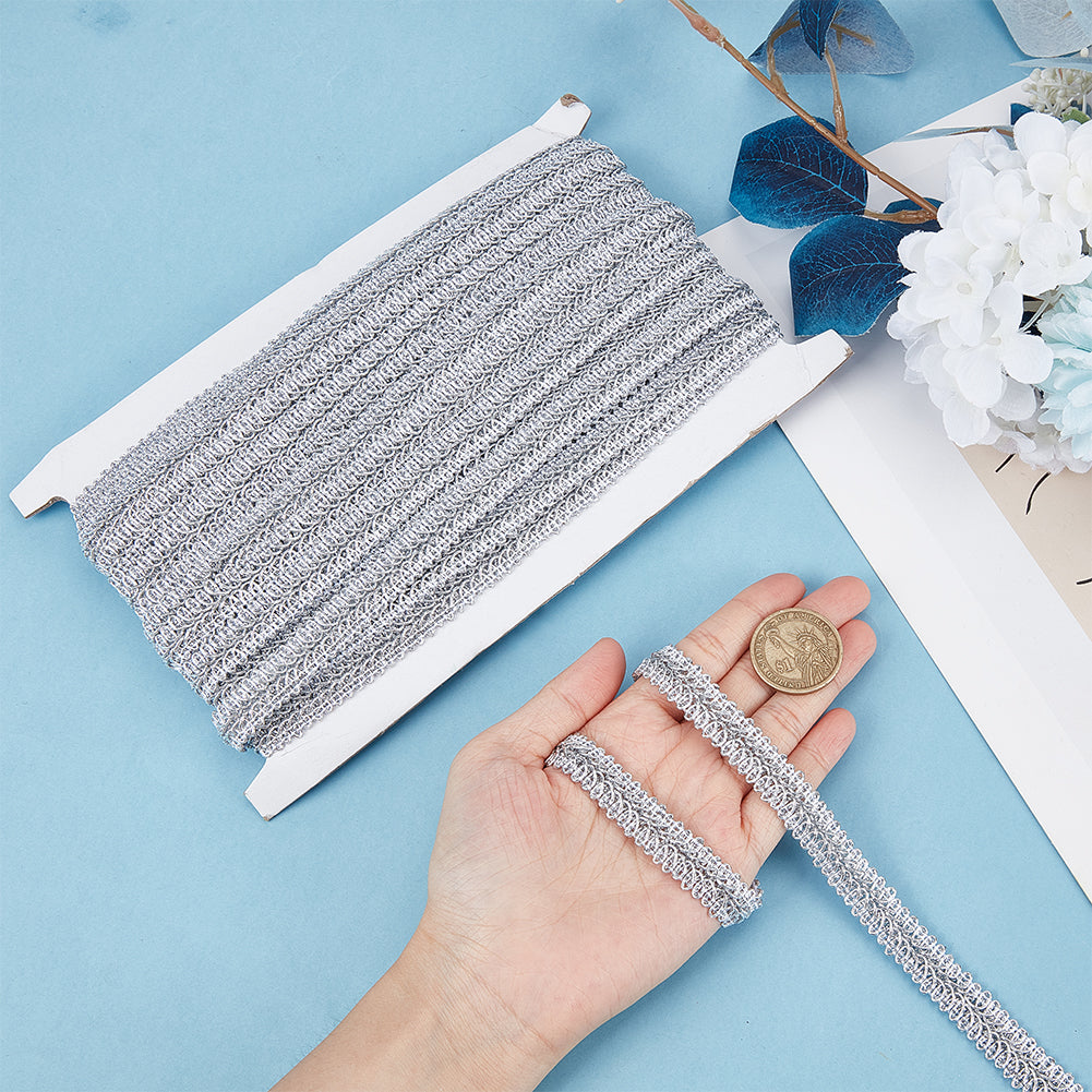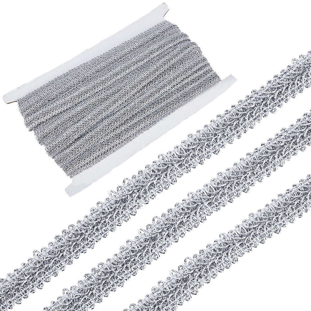 13M Metallic Yarn Ribbons, Jacquard Ribbon, Centipede Lace Ribbons, Garment Accessories, Silver