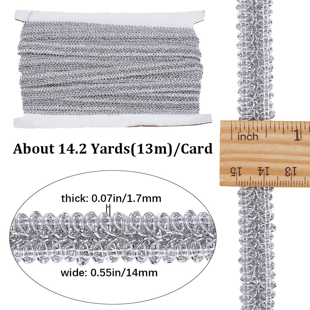 13M Metallic Yarn Ribbons, Jacquard Ribbon, Centipede Lace Ribbons, Garment Accessories, Silver, 1/2 inch(14mm), about 14.22 Yards(13m)/Card