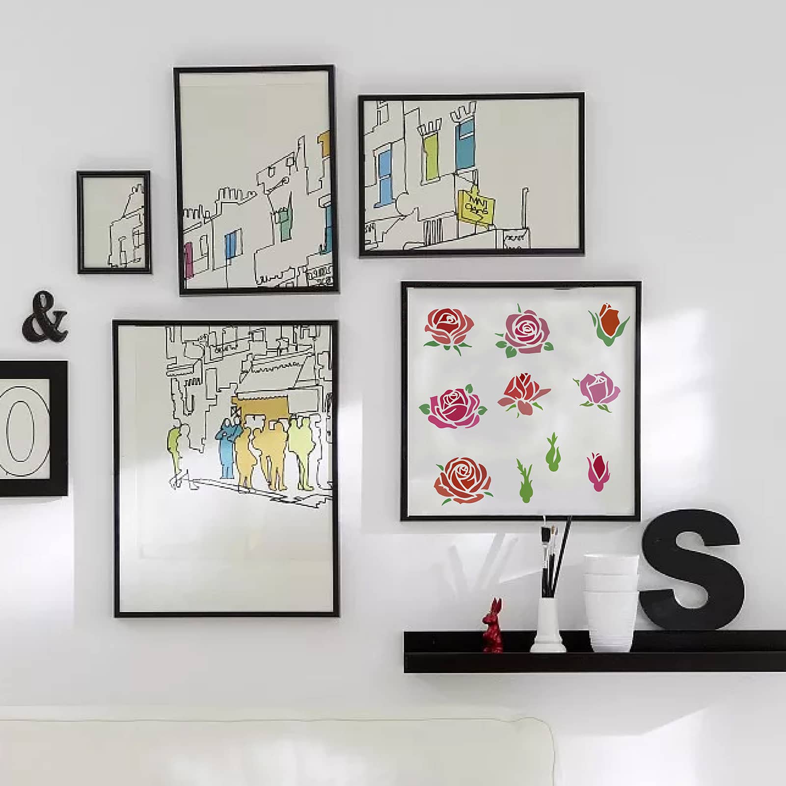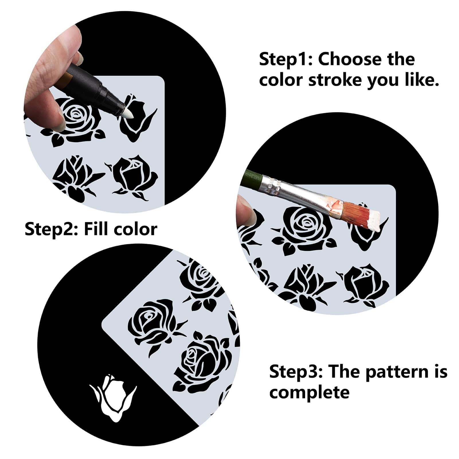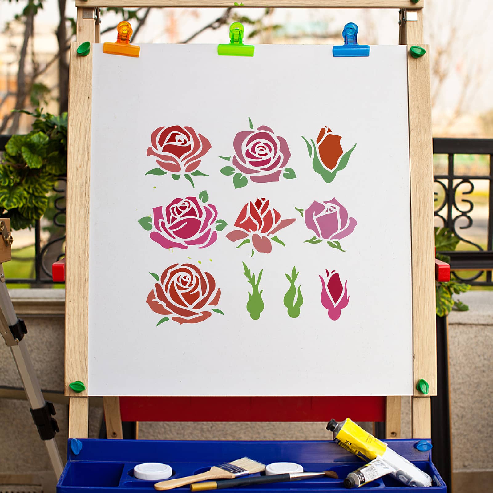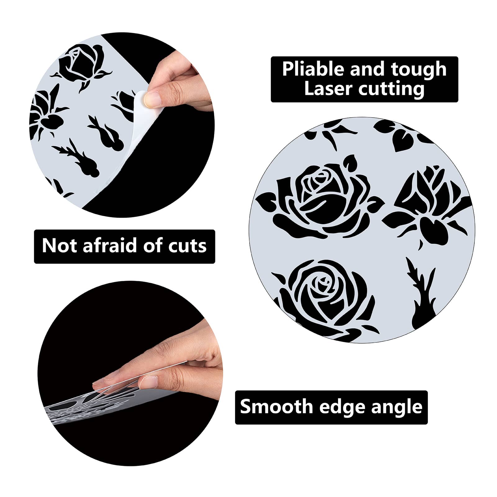 PET Plastic Hollow Out Drawing Painting Stencils Templates, Square, Rose Pattern