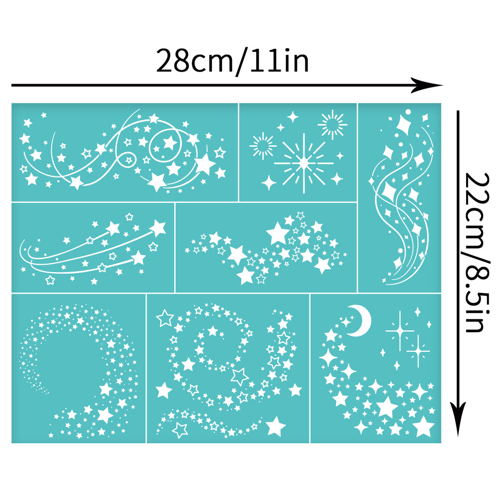 Self-Adhesive Silk Screen Printing Stencil, for Painting on Wood, DIY Decoration T-Shirt Fabric, Turquoise, Star, 280x220mm