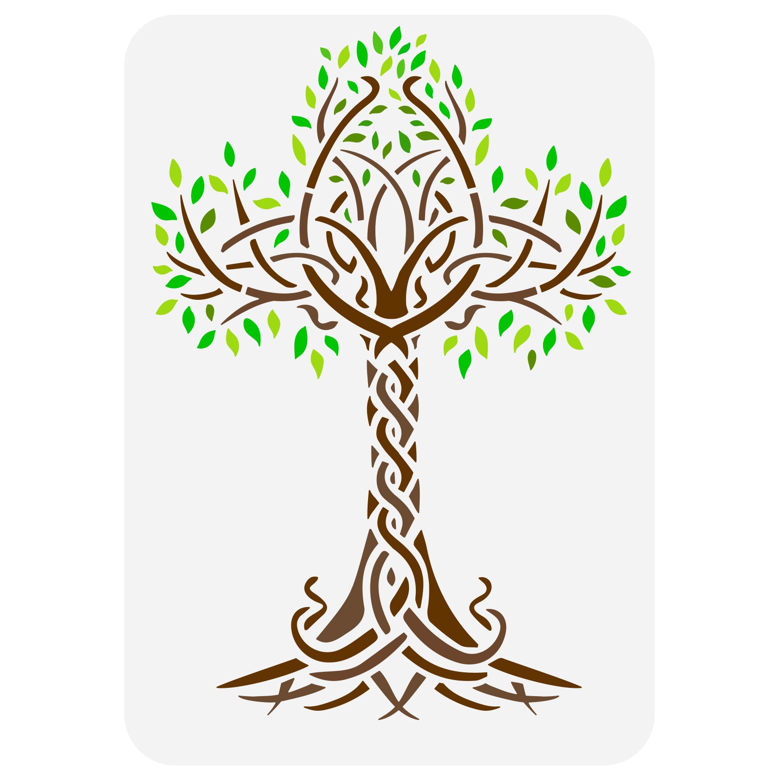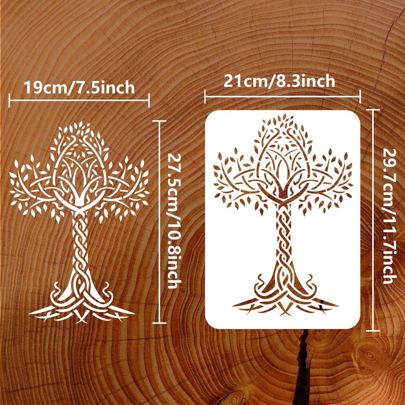 Plastic Drawing Painting Stencils Templates, for Painting on Scrapbook Fabric Tiles Floor Furniture Wood, Rectangle, Tree of Life Pattern