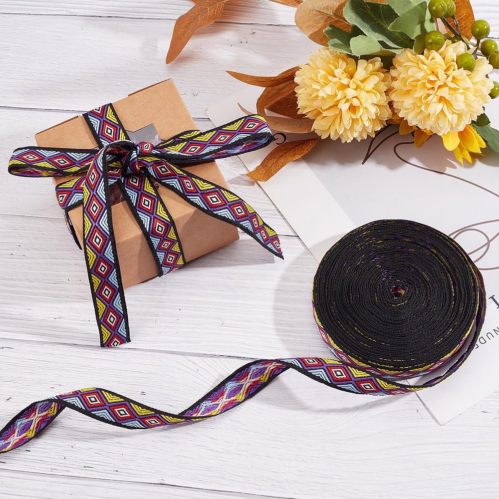 Ethnic Style Jacquard Polyester Ribbons, Garment Accessories, Rhombus Pattern, Colorful