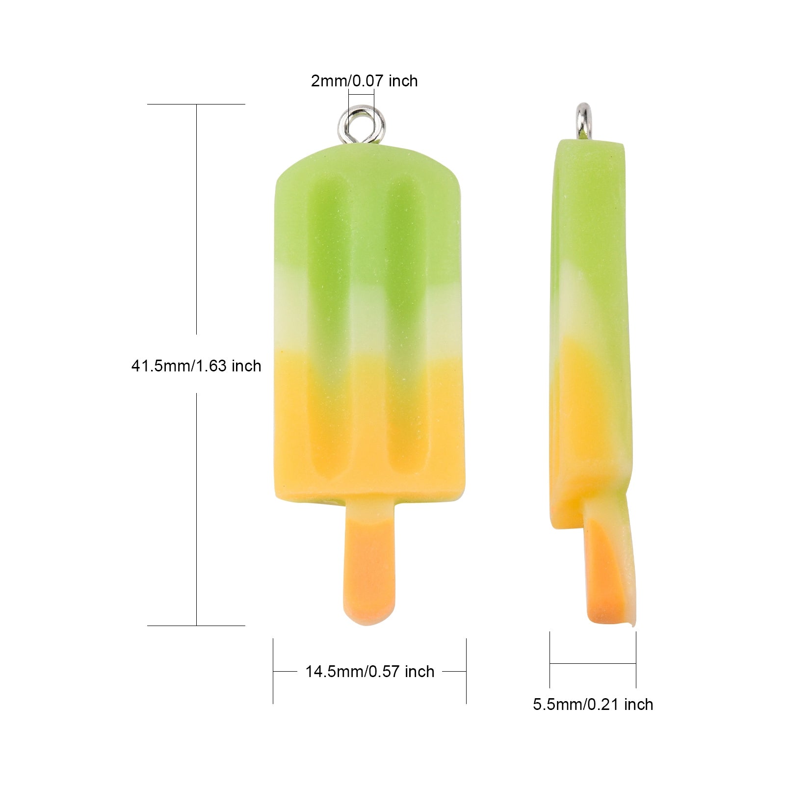 Rainbow Resin Pendants, with Platinum Tone Iron Loop, Ice Cream, Mixed Color, 41.5x14.5x5.5mm, Hole: 2mm, 10pc/Set