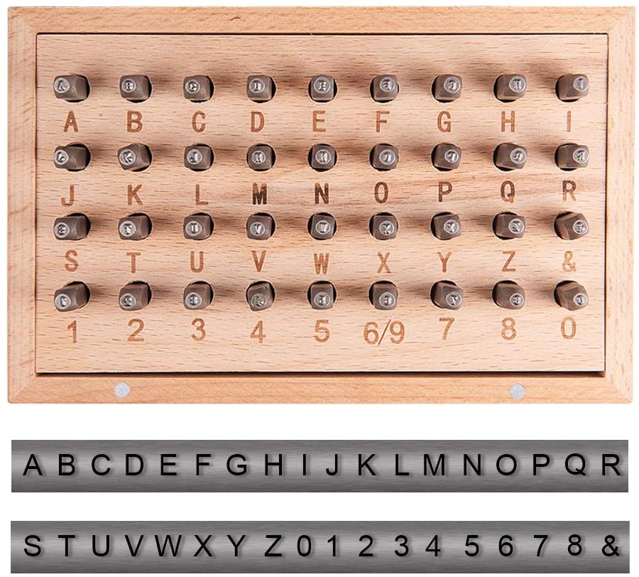 Iron Seal Stamps, Including Letter A~Z, Number 0~8 and Ampersand, Black, 60x6mm, Letter & Number: 5mm, 36pcs/box