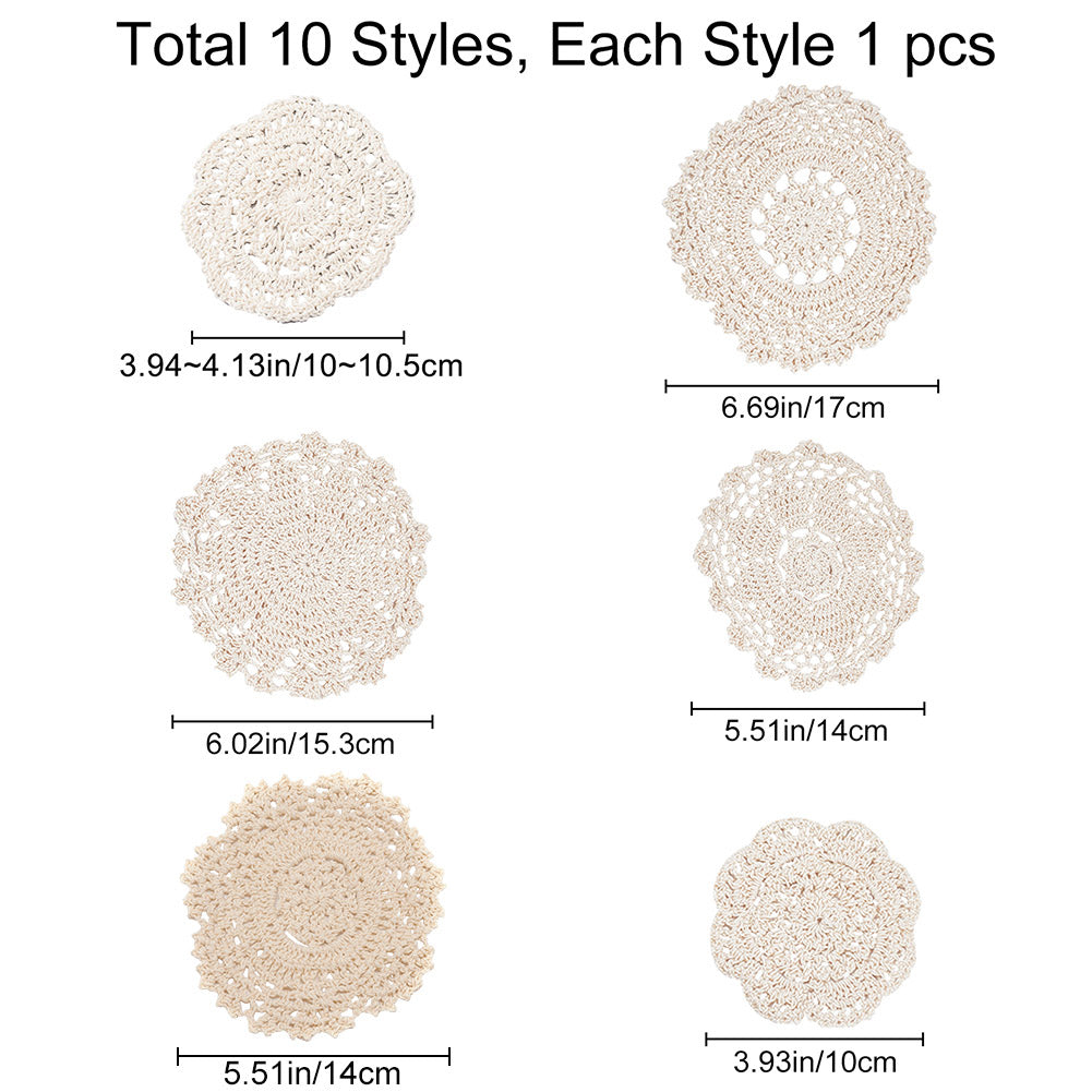 Cup Mat Cotton Coaster, Crochet Cotton Lace Coasters, for Drinks Home Decoration, Bisque, 10pcs/set