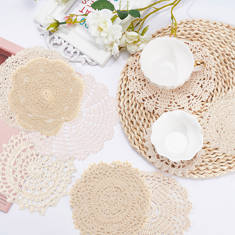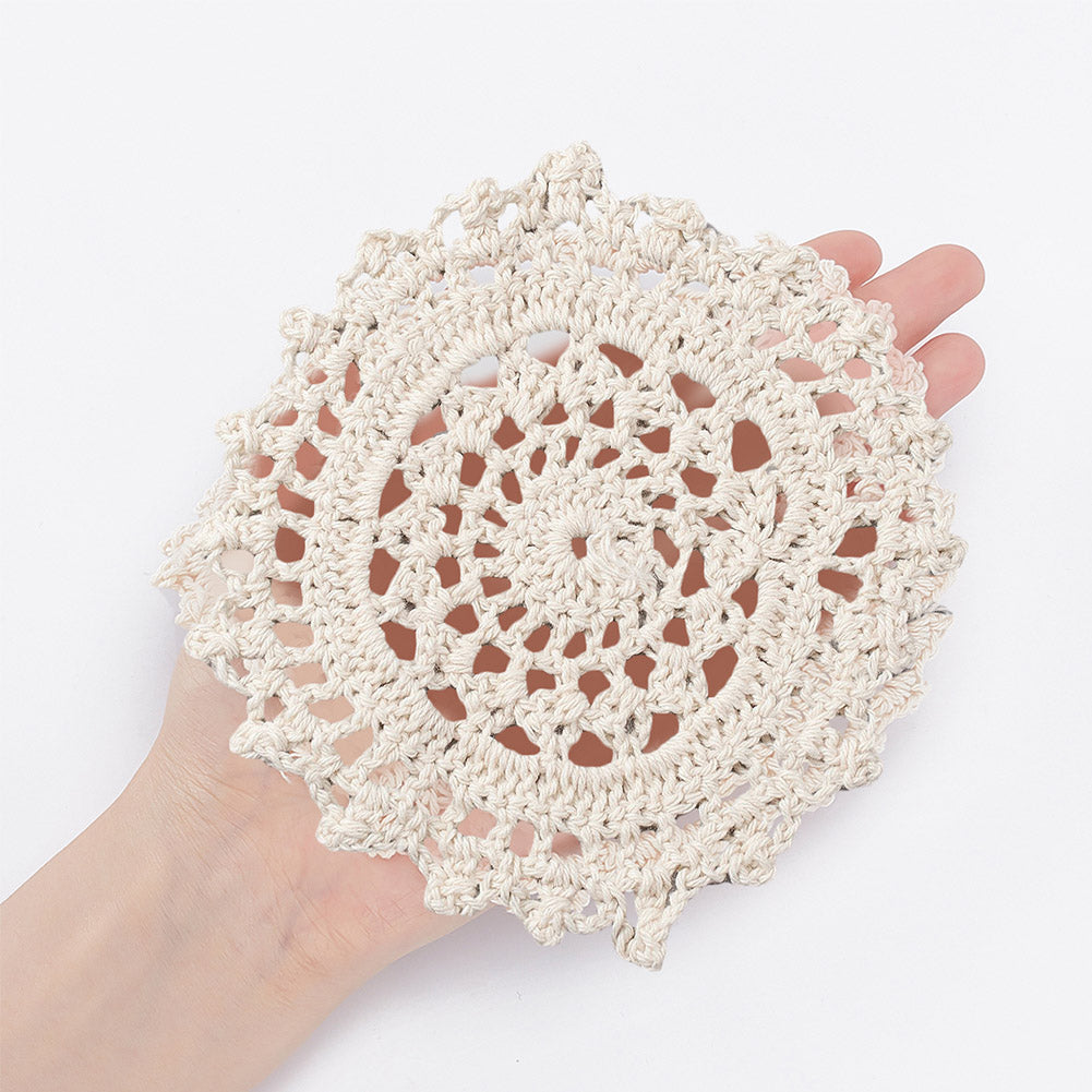 Cup Mat Cotton Coaster, Crochet Cotton Lace Coasters, for Drinks Home Decoration, Bisque