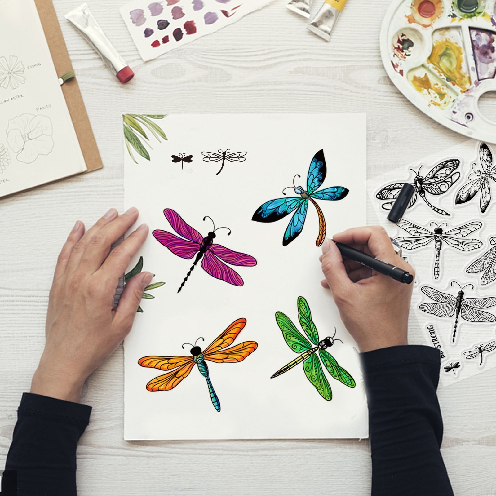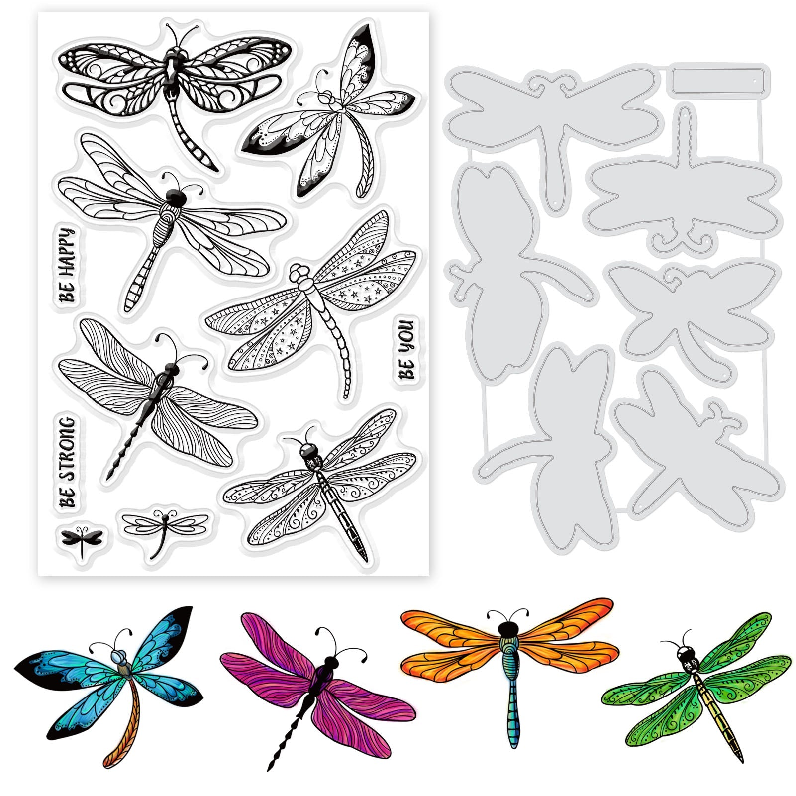 1Pc Carbon Steel Cutting Dies Stencils & 1 Sheet PVC Plastic Stamps, for DIY Scrapbooking/Photo Album, Decorative Embossing DIY Paper Card, Dragonfly, Flower, Insect Pattern
