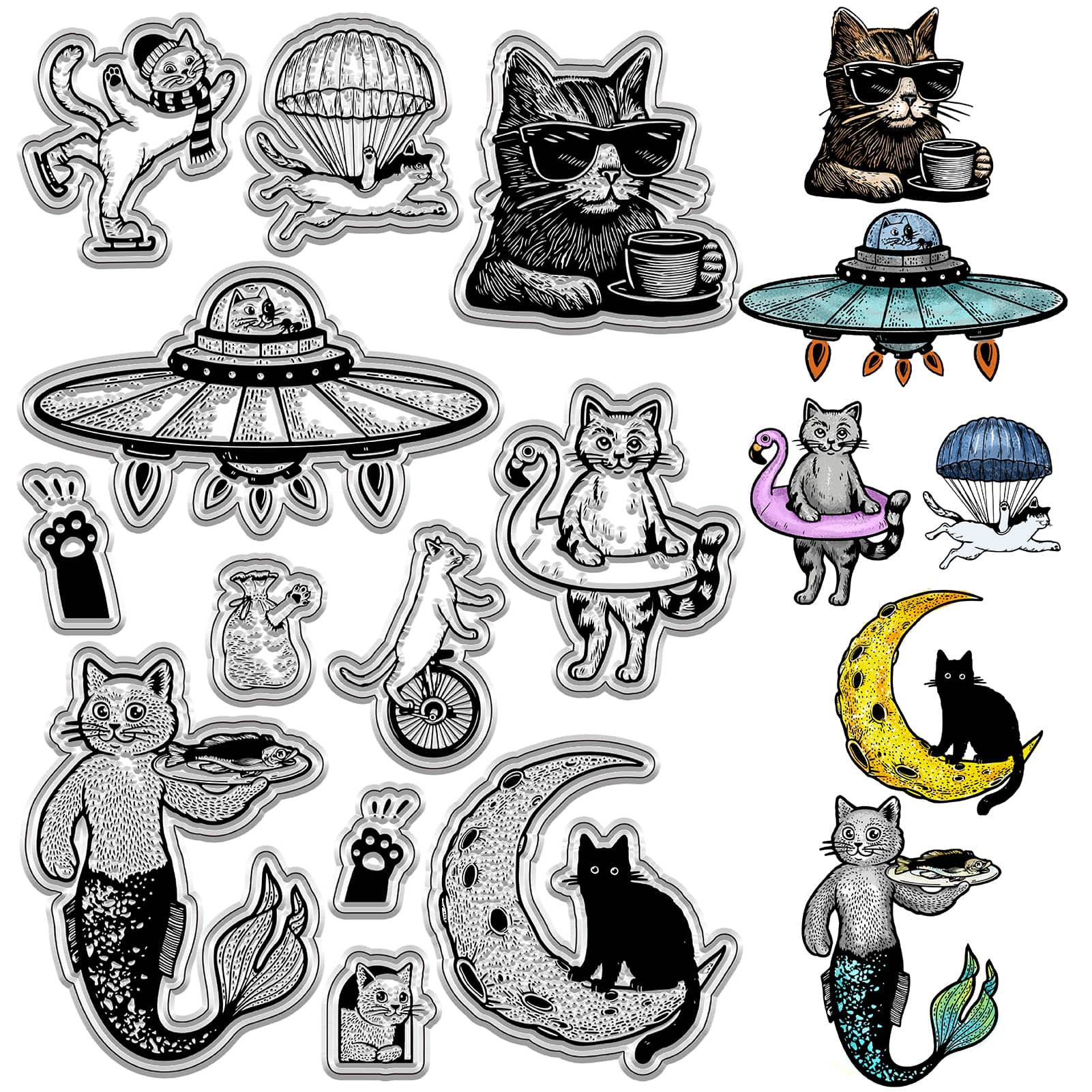Custom PVC Plastic Clear Stamps, for DIY Scrapbooking, Photo Album Decorative, Cards Making, Stamp Sheets, Film Frame, Cat Shape