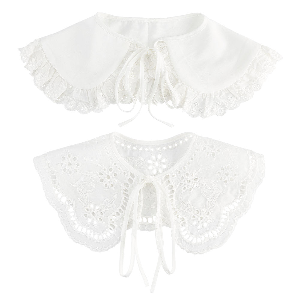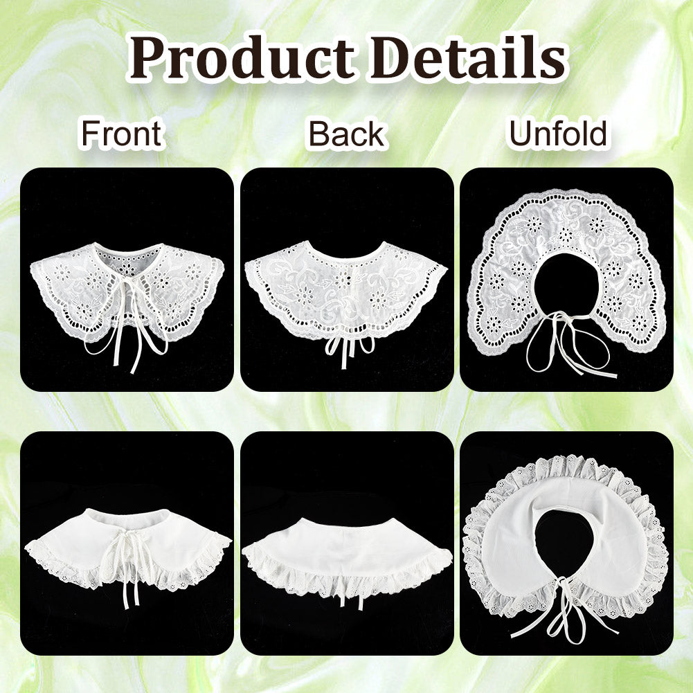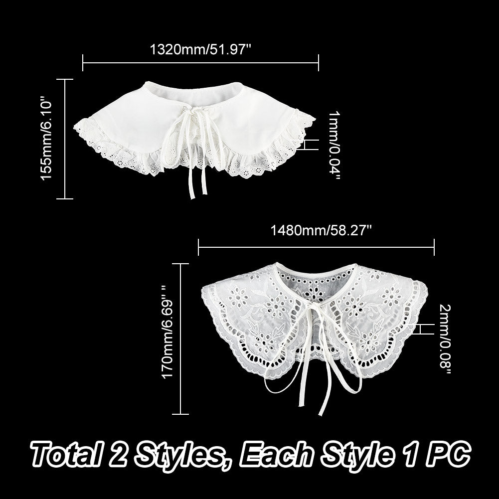 2Pcs 2 Style Detachable Lady's False Collars, Scalloped/Ruffled Edge Neckline Trim, Clothes Sewing Applique Edge, DIY Garment Accessories, White, 1320~1480x155~170x1~2mm, 1pc/style