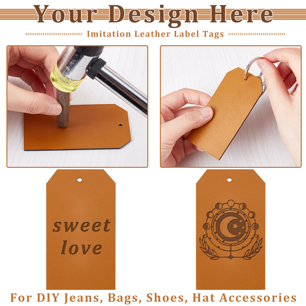 Imitation Leather Tags, Thermo Discolor Leather Stamping Blank Tag, Heat Transfer Blanks, Rectangle, Peru, 91x45x2mm, Hole: 3mm